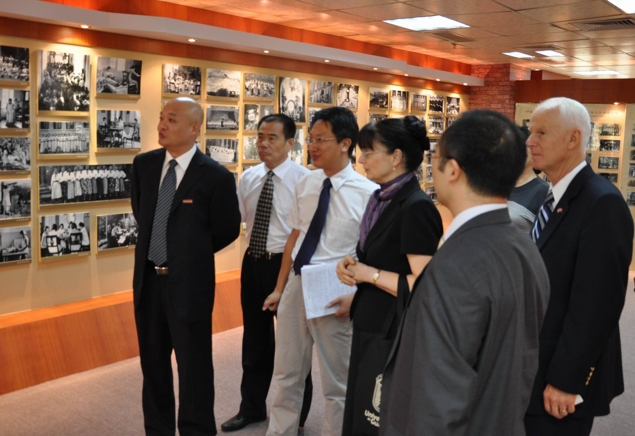 来访客人还参观了老照片展、学校沙盘和旗山校区校园。