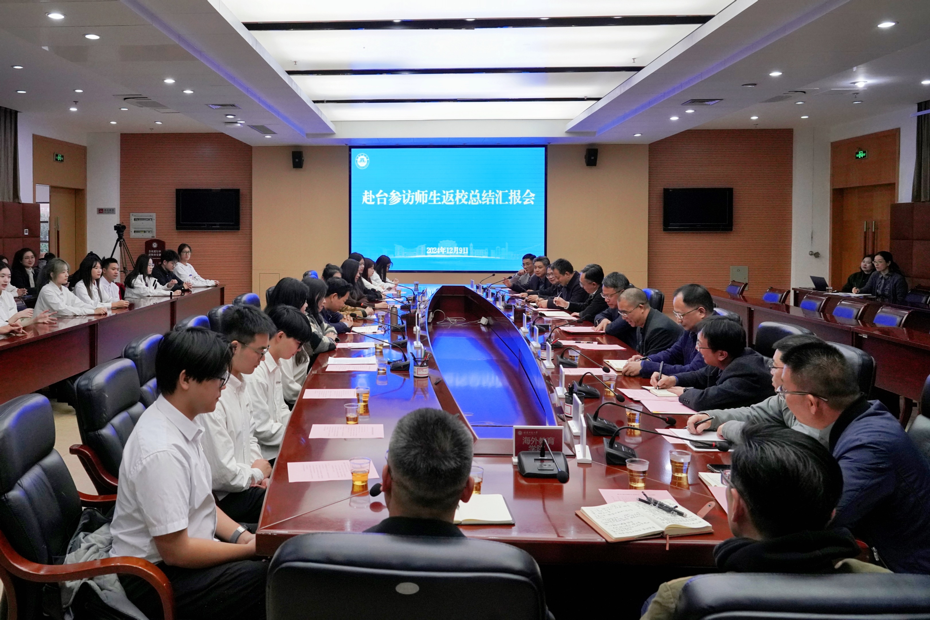 汇报会于12月9日在旗山校区举行。校党委书记潘玉腾、副校长郑家建,党政办公室、宣传部、学生工作部、台港澳事务办公室、两岸融合发展研究院及相关学院负责人、赴台参访师生团及师生代表参加会议。会议由郑家建主持。
