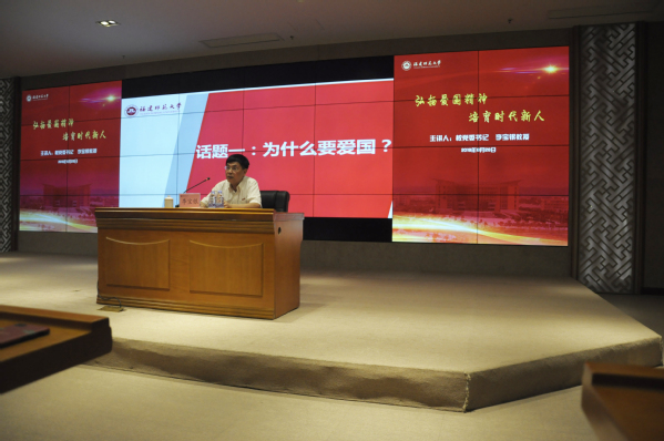 6月28日下午,校党委书记李宝银为孔子学院总部2019年赴亚洲汉语教师志愿者岗前培训班作《弘扬爱国精神,培育时代新人》的讲座。海外教育学院部分师生,以及参加岗前培训的145名汉语教师志愿者参加了讲座。