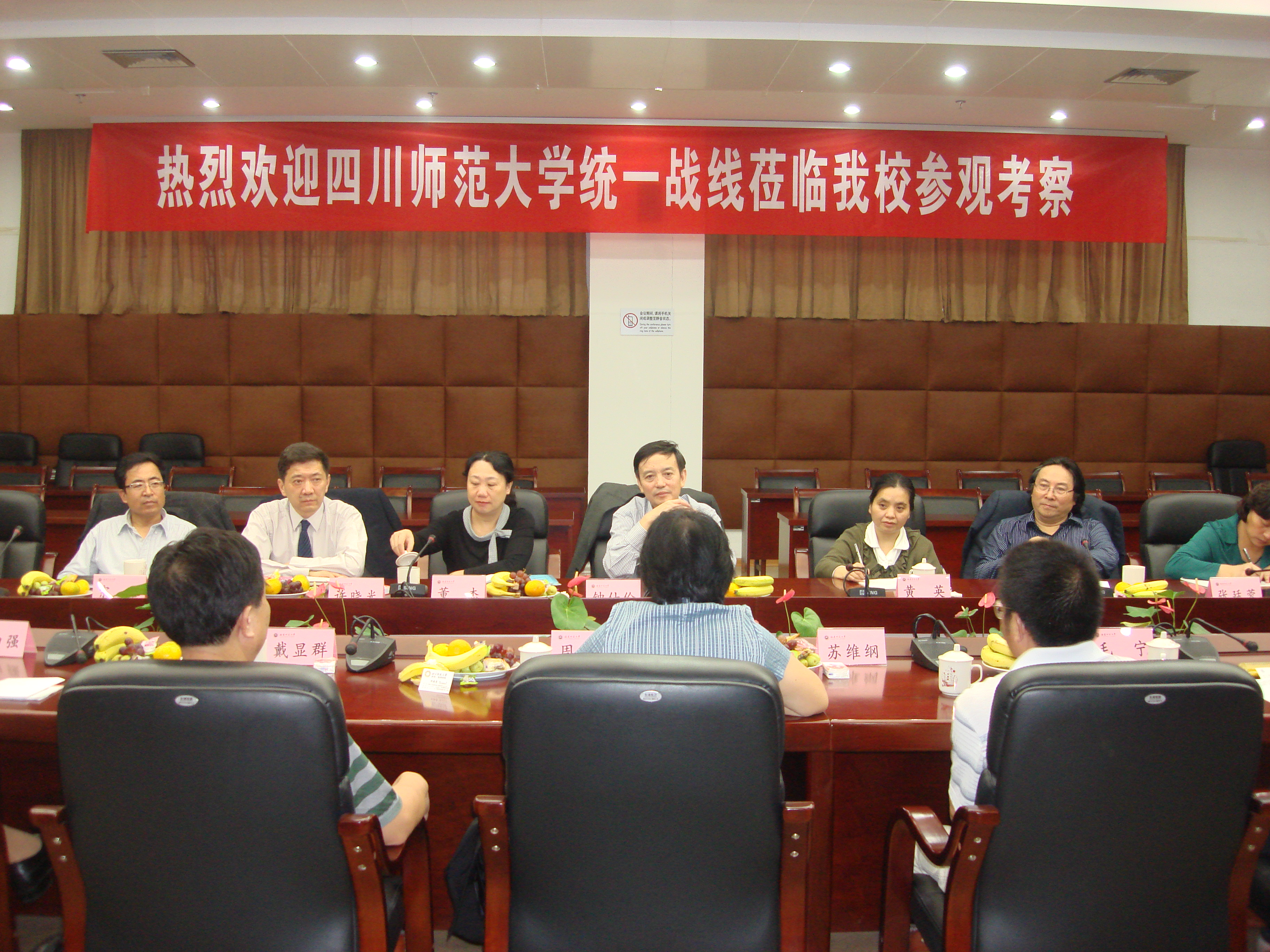 10月17日至18日,四川师范大学党委副书记钟仕伦率校统一战线各组织负责人一行10人来我校考察交流。校领导罗萤、黄汉升、黄锦平、李敏先后会见了钟仕伦一行,党委统战部,校统一战线有关组织负责人参加了会见。