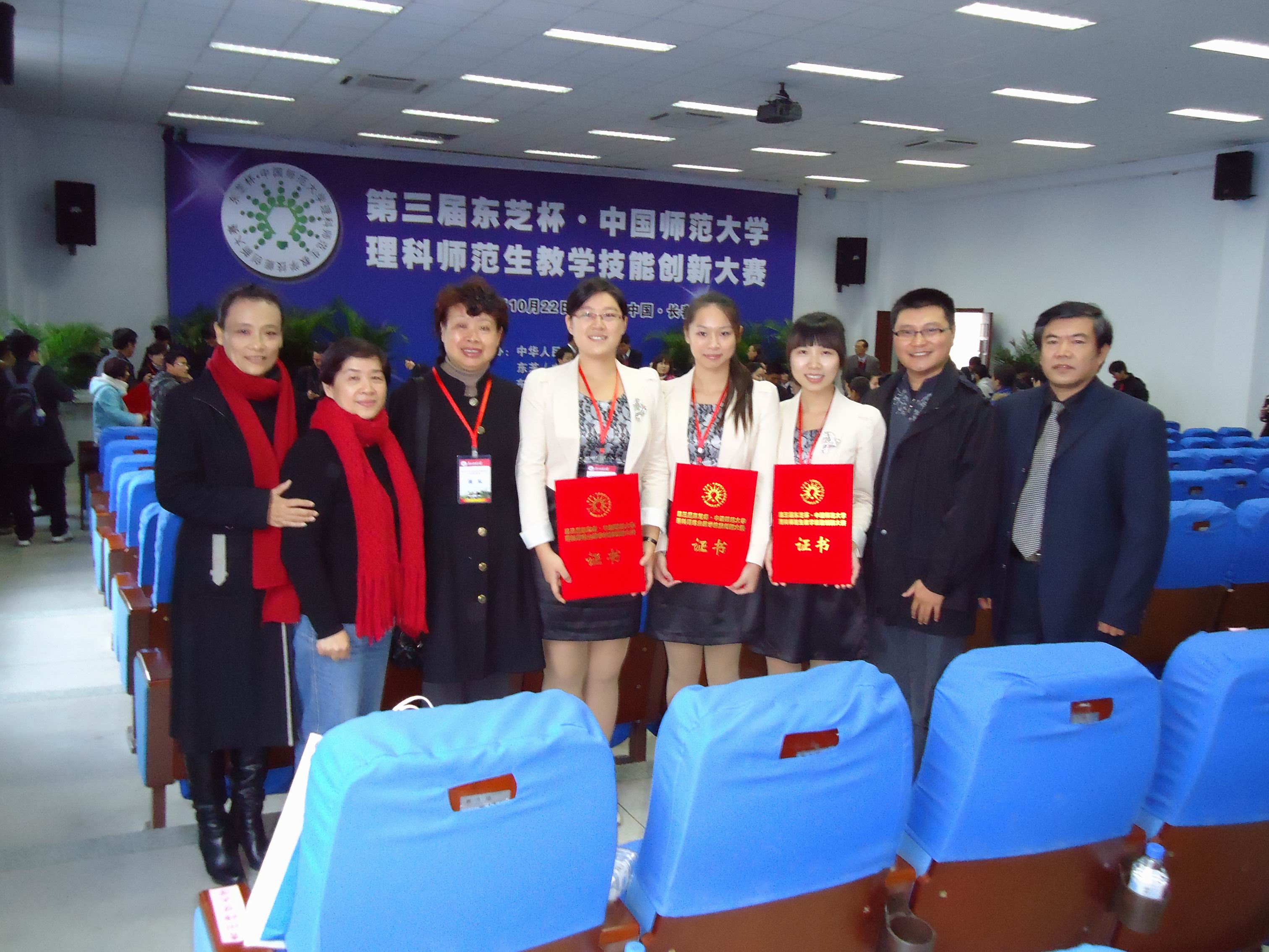本赛事是教育部举办的高水平的理科师范生教学技能创新实践比赛,分数学、物理、化学三个学科。其目的是促进中日友好和支持中国教育事业,培养造就一批“师德高尚、理念先进、业务精湛、锐意创新”的优秀理科教师后备力量,为中国师范教育发展和自主创新能力的提高作贡献。前两届仅在6所全国部属重点师范大学及6所省属重点师范大学中举行,今年第一次面向全国40所师范大学学生举办,每学科派出一名学生参加决赛,内容包括即席讲演、教案评比、模拟授课、现场问答四个部分,由教育部和各院校专家组成评委会进行专业评选。我校首次参赛即取得了优异的成绩,得到大赛组委会的高度评价。王素云同学还作为唯一参赛选手,发表获奖感言。