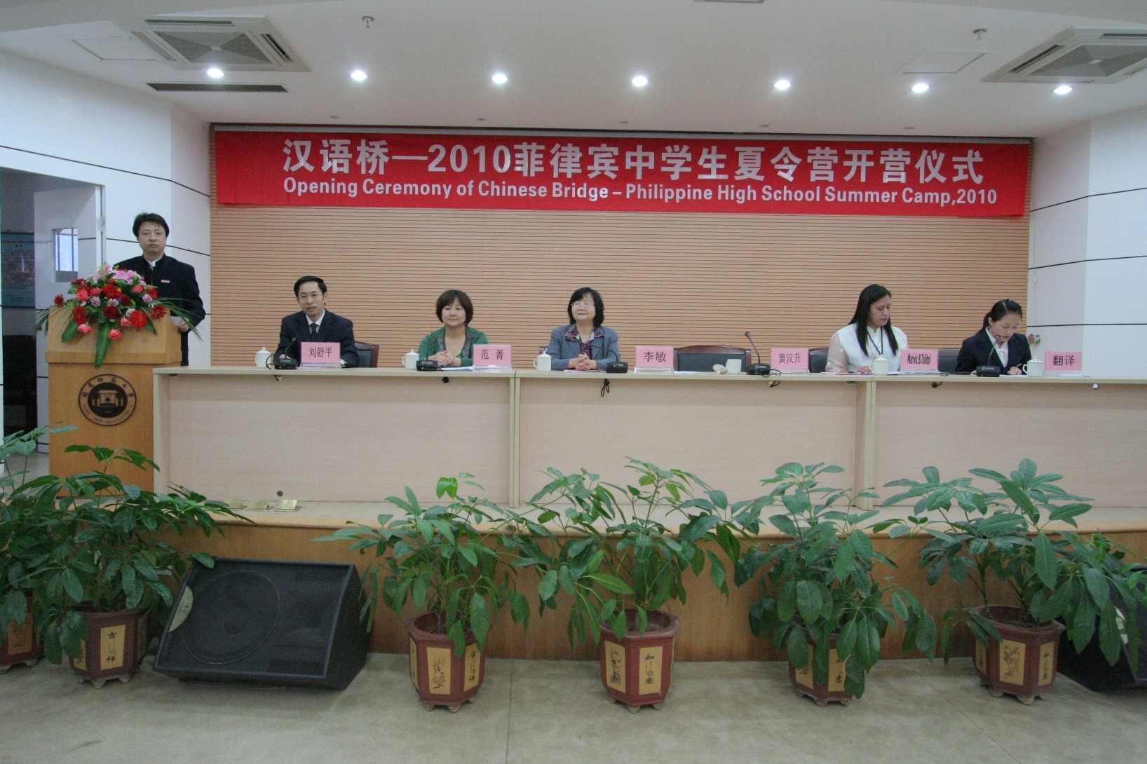 省教育厅代表范菁主任、我校学生志愿者代表和夏令营营员代表也先后发言,表达他们美好的愿望。最后,李敏和玛丽维克•托丽托女士分别向营员代表授福建师范大学校旗和“汉语桥-2010菲律宾中学生夏令营”营旗。
