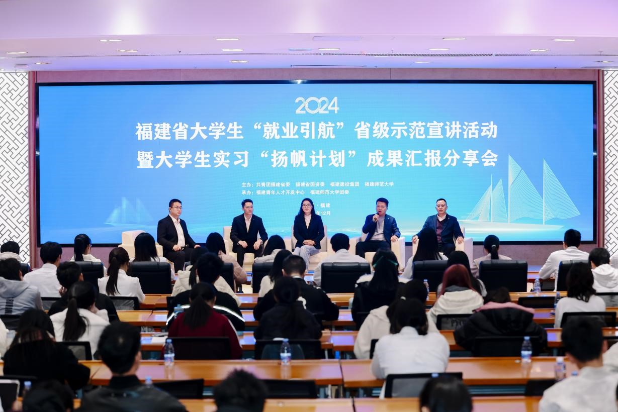 会上,我校和福州大学、福建农林大学的学生代表及中铝瑞闽股份有限公司代表分别作“扬帆计划”大学生实习工作分享,来自中国武夷国际事业部、中建海峡国际工程公司、中国水电十六局国际公司等单位代表分别结合自身工作经历与成长进行了“就业引航”宣讲。用人单位代表就同学们关心的就业问题进行了现场交流互动。
