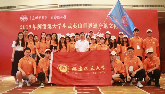 7月7日,2019年闽港澳大学生武夷山世界遗产地文化研学班开营。福建省人大常委会原副主任、省国际文化经济交流中心理事长陈桦,福建师范大学原党委书记、交流中心青年交流工作小组组长罗萤,团省委陈涛副书记以及参与活动的各高校党委副书记出席开营仪式。现场,我校党委叶燊副书记为营员代表授旗并看望慰问我校实践团队成员。