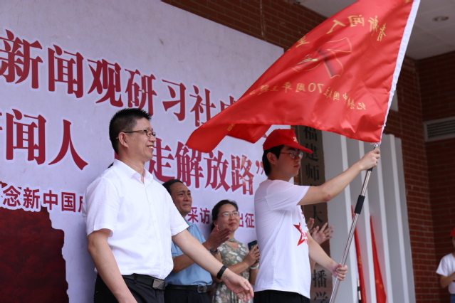 7月15日上午,传播学院马克思主义新闻观研习社成立暨“青年新闻人 重走解放路”主题采访活动出征仪式在我校举行。省委宣传部副巡视员卓少锋,省委宣传部新闻出版处处长陈钦灿,福建日报社编委会委员、东南网总编辑曾武华,省委宣传部新闻出版处副处长高延萍,东南网管委会成员、总编辑助理朱力南,校党委副书记潘玉腾,校党委宣传部、校团委等部门负责人,传播学院党政负责人、师生代表,东南网视频部代表、马克思主义新闻观研习社成员及学生记者参加活动。