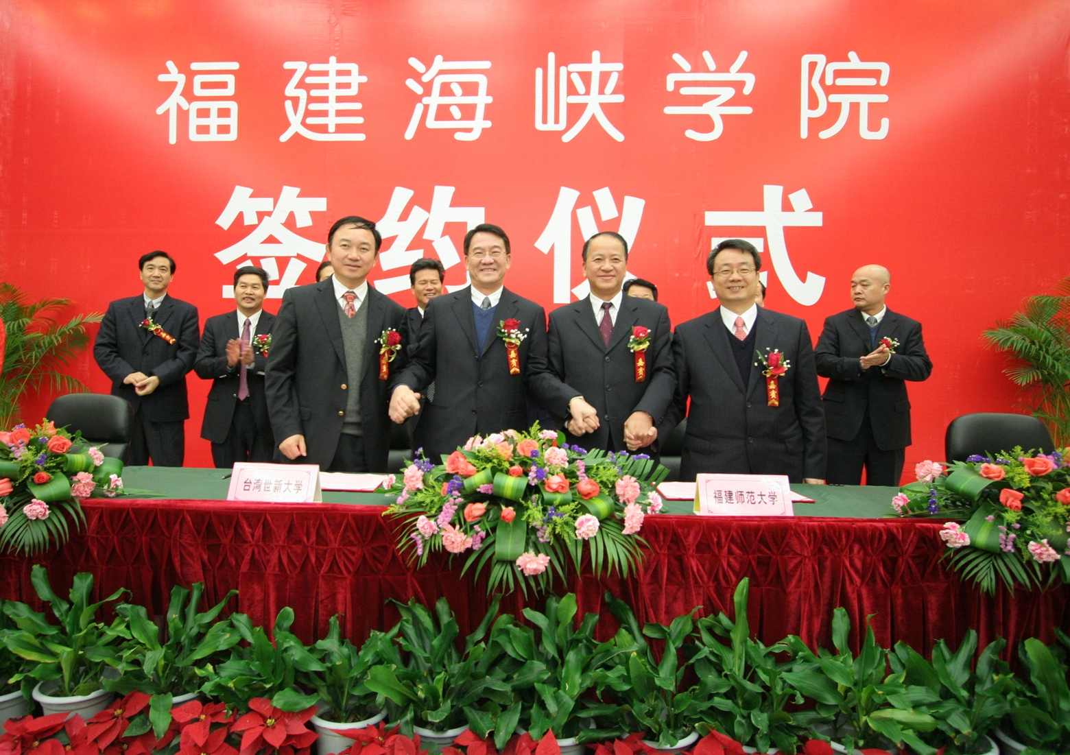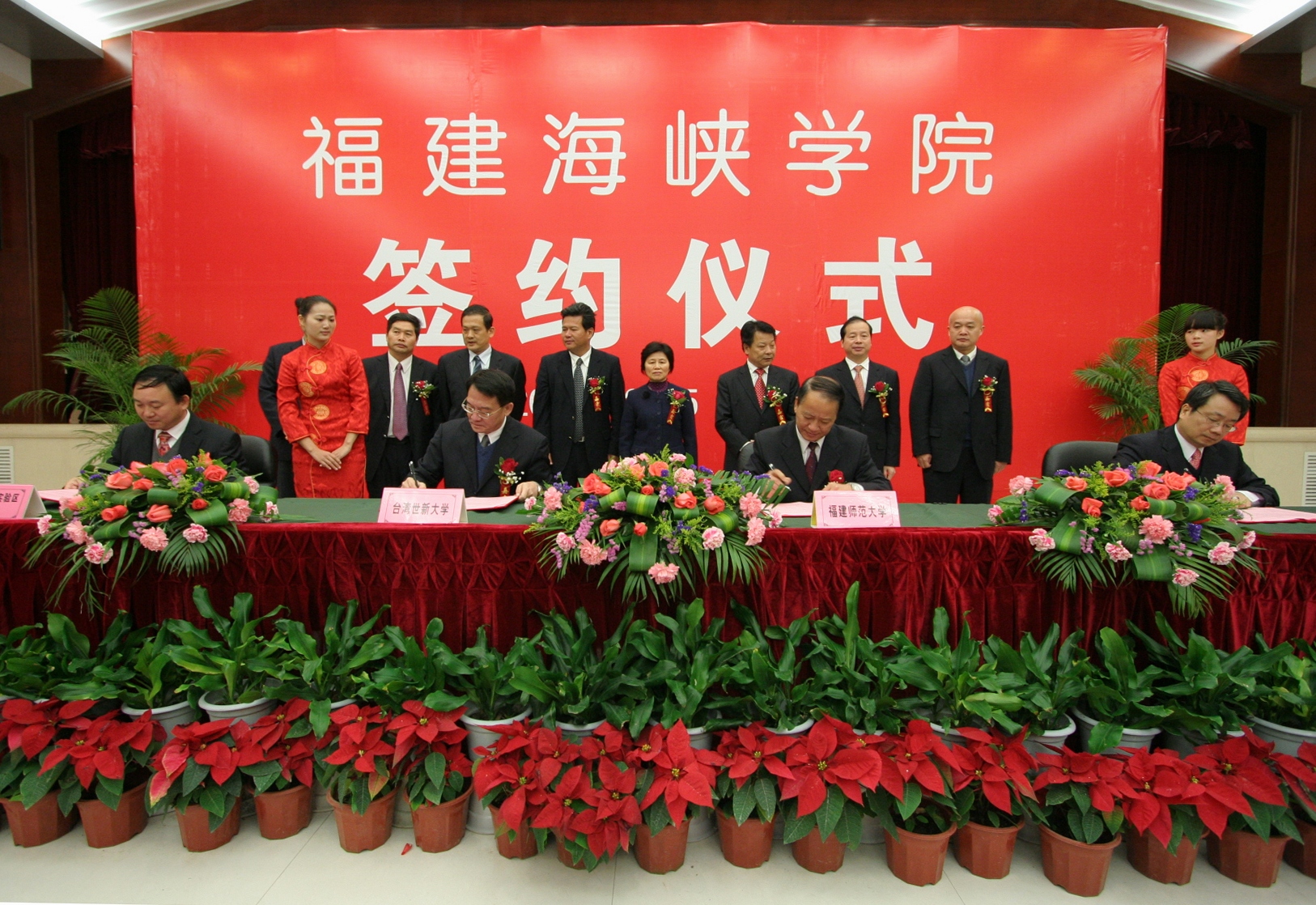 杨辉代表省教育厅向签约仪式的举行表示热烈祝贺,表示将认真贯彻落实省委省政府的战略部署,一如既往地从政策、资金以及保障措施等方面给予全方位支持,促进福建海峡学院又好又快发展。杜源生对福建海峡学院落户平潭表示热烈祝贺,指出四方签约共同创办福建海峡学院,标志着平潭综合实验区教育事业将实现历史性突破,对实验区实现持续发展、科学发展、跨越发展具有特别重要的意义,也将开启两岸在平潭合作办学和文化交流的先河。平潭综合实验区将为创办福建海峡学院提供更加优惠的政策、更加宽松的办学环境和更加优质的服务。 随后,我校党委书记罗萤、台湾世新大学副校长熊杰、台湾东森国际股份有限公司总经理廖尚文、平潭综合实验区党工委副书记、管委会副主任杜源生分别代表合作四方在《共同创办福建海峡学院合作意向书》上签字。 根据合作意向书,我校与台湾世新大学、台湾东森国际股份有限公司、平潭综合实验区管委会将集中和整合各方优质资源,着力先行先试,共同构建海峡两岸合作办学的新机制、新模式,把福建海峡学院建设成为两岸合作办学实验基地、旅游(观光)、传媒、文化创意等领域人才培养基地和产业技术研发创新基地。学院将纳入平潭综合实验区平洋组团统筹规划布局,由实验区提供办学用地800亩;台湾东森国际股份有限公司以募集或其他适当且合于两岸现行法律之方式参与兴建学院的基本建设。学院的功能定位为,以学历教育为主(本科教育和研究生教育),适当兼顾中高等职业教育和职业技术培训、产业研发等。在学科专业设置上,将先以旅游、新闻、传播相关专业为主,再逐步扩大到文化创意类、现代服务业类等专业,在校生总数暂定为1万人。学院招收的学生,由我校与台湾世新大学共同制定人才培养方案和教学计划,共同开发课程和教材,两校教师共同联合培养。 福建海峡学院已于2010年开始招生,目前依托我校旗山校区进行办学,争取2012年9月入驻平潭综合实验区。 (学校办公室 张 苏)