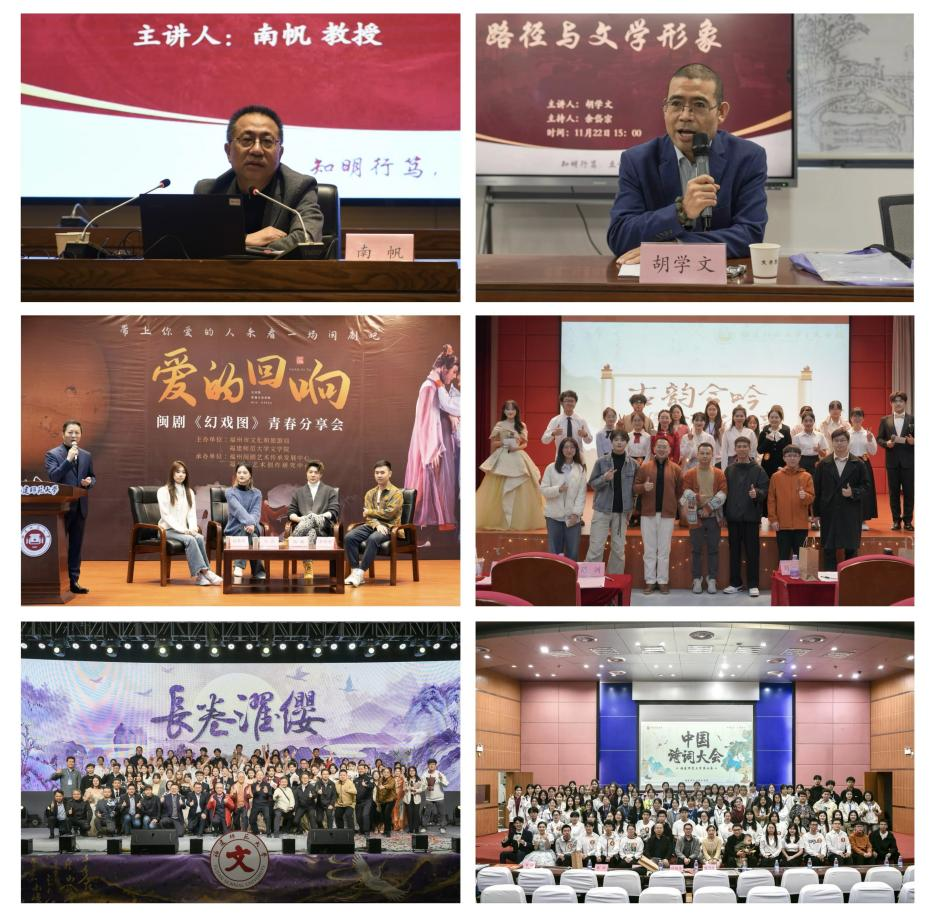 本次活动延续“学科+”模式,立足文学创作,邀请南帆、周晓枫、胡学文、龚万莹等国内知名作家入校与文学创作爱好者面对面交流;引进优质资源,邀请第九届福建艺术节戏剧会演“优秀剧目奖”获奖剧目——闽剧《幻戏图》剧组入校演绎交流;推动实践探索,依托学校艺术地区及老建筑开展环境戏剧《安东:》校内展演;赋能专业成长,开展研究生科技节、“爱上语文课”研究生教学能力提升系列活动;丰富校园文化,开展校第七届中国诗词大会、迎新晚会、社团风采展示等多项活动,学生反响热烈。