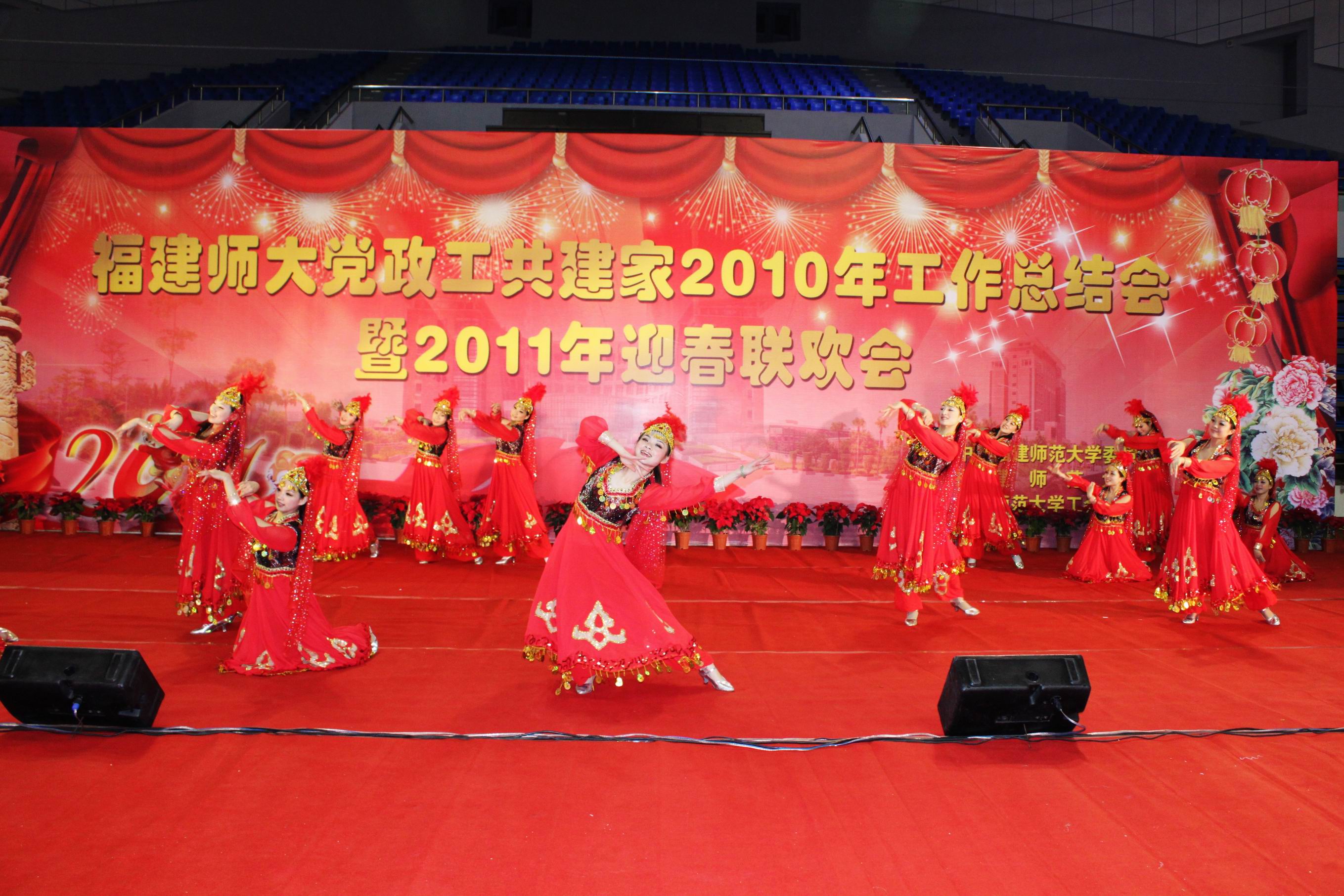 联欢会在热情奔放的舞蹈《花儿为什么这样红》中拉开序幕,文艺表演过程中穿插现场抽奖活动,精彩纷呈的文艺节目和现场互动环环相扣,罗萤书记、黄汉升校长等参与的红歌联唱更把联欢会气氛推向高潮,赢得与会人员的热烈掌声。