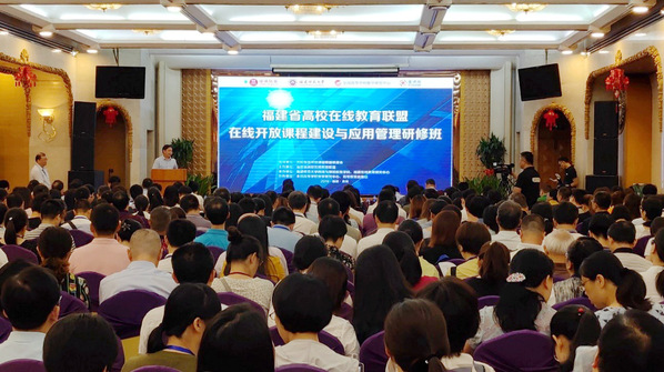 近日,福建省高校在线教育联盟(福课联盟)2019年第一期“在线开放课程建设与应用管理研修班”在泉州举办。本期研修班在高校在线开放课程联盟联席会指导下,由福建省高校在线教育联盟主办,福建师范大学网络与继续教育学院、福建在线教育研究中心承办,全国高等学校教学研究中心、高等教育出版社协办,联盟各成员高校教务处、省级立项建设在线开放课程负责人、线上线下混合式课程申报教师,以及宁夏回族自治区、浙江省和广东省大湾区高校教师代表等近500人参加。