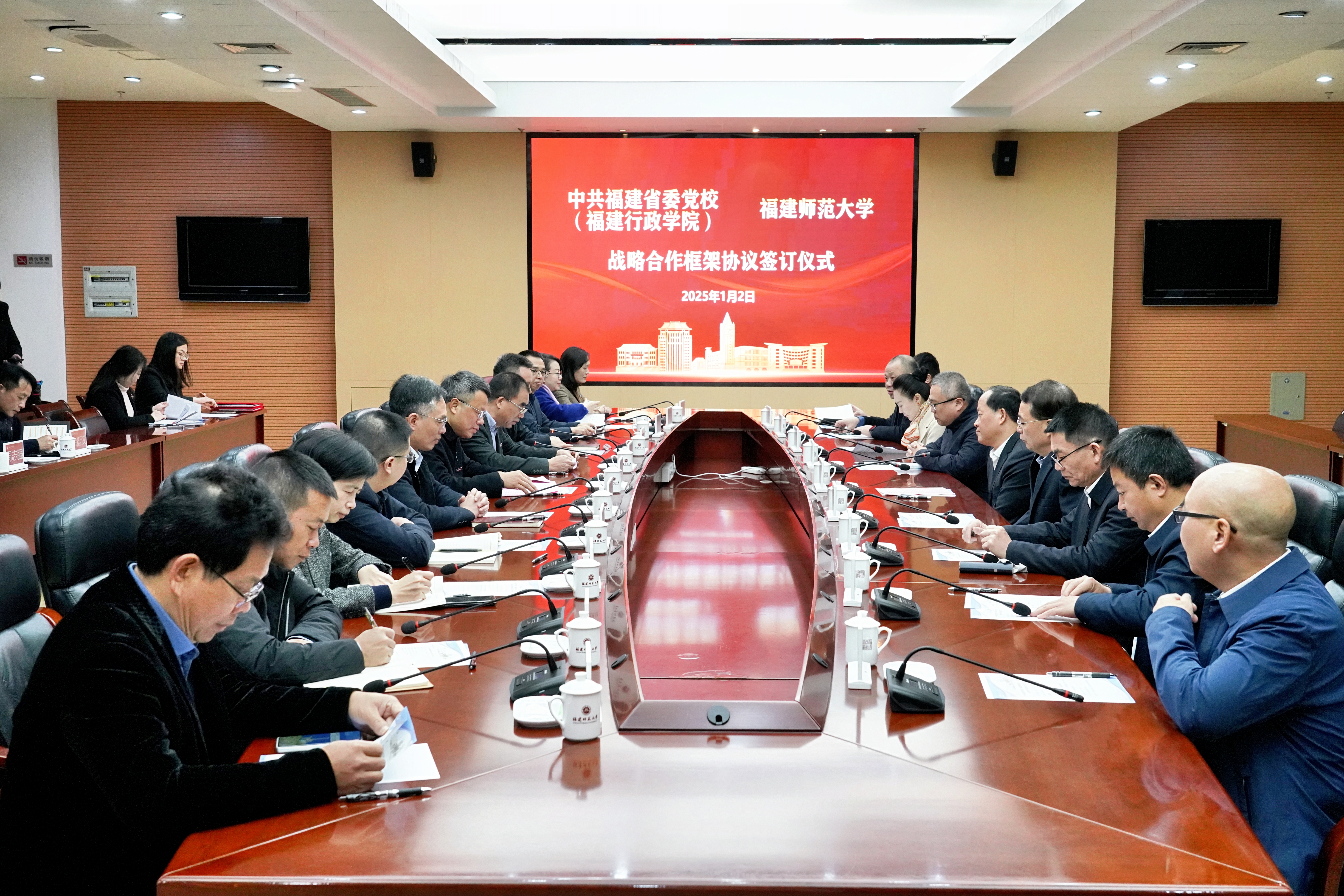 签订仪式于1月2日在旗山校区举行。福建省委党校(福建行政学院)分管日常工作副校(院)长金敏、副校(院)长温敬元、我校党委书记潘玉腾、校长郑家建,两校相关职能部门、学院负责人等参加仪式。仪式由郑家建主持。
