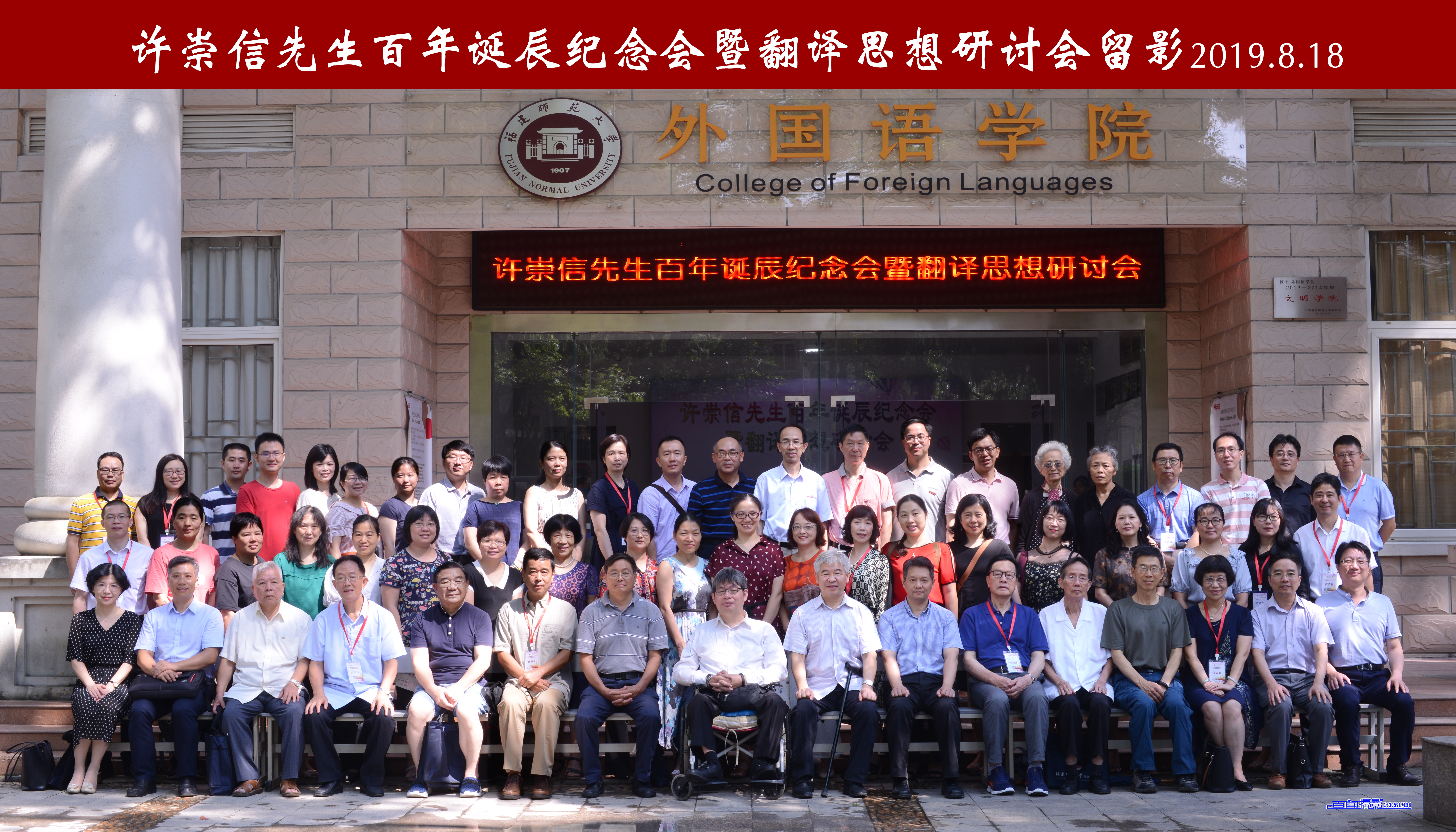 8月18日,外国语学院举办的许崇信先生百年诞辰纪念会暨翻译思想研讨会在福州召开,福建省相关厅局单位、翻译协会领导,省内外十多所兄弟院校领导、教师,许崇信先生亲朋好友,以及外国语学院师生共150多人参加了本次会议。会议分纪念会和翻译思想研讨会两个阶段。福建省人民政府外事办公室党组成员、福建省对外友好协会专职副会长、福建省翻译协会会长陈出新,福建声滔实业投资集团董事局主席、我校常务董事郑声滔,副校长赖海榕,许崇信先生后人及同事分别致辞;纪念会还举行了《许崇信先生诞辰百年纪念文集》发布会。研讨会上,福州大学外国语学院陈小慰教授、中央广播电视总台毕冰宾教授、福建工程学院人文学院院长戴光荣教授和我校博士生导师岳峰教授分别作主旨报告;会前,我校1977级优秀校友陈普博士捐赠了2幅书法作品。