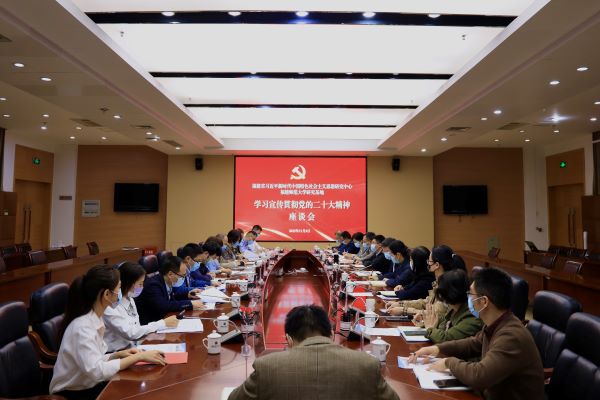 11月4日,福建省习近平新时代中国特色社会主义思想研究中心福建师范大学研究基地学习宣传贯彻党的二十大精神座谈会在旗山校区行政楼第十会议室举行。校党委书记、研究基地主任潘玉腾,校党委副书记、研究基地常务副主任陈晓红,研究基地成员、研究团队主要负责人以及专家学者、校党委讲师团成员、师生代表参加会议。座谈会由陈晓红主持。