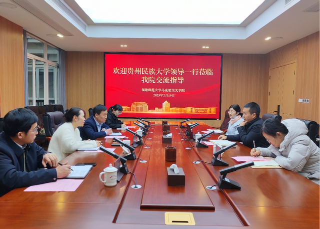 近日,贵州民族大学教师工作部部长、组织部副部长、人事处处长王恋,马克思主义学院党委副书记徐勤山一行4人到我校马克思主义学院调研交流。学院党委书记阮传瞰、教学科研管理办公室、学科与平台建设管理办公室负责人参加座谈会。会上,双方分别介绍了学院的发展历程和基本情况,并围绕学科专业建设、博士人才引进、思政课建设、教育教学改革等方面工作展开探讨,表示未来将加强沟通与合作,推动工作高质量发展。期间,贵州民族大学一行还参观了我校马克思主义学科群展览馆。(马克思主义学院)