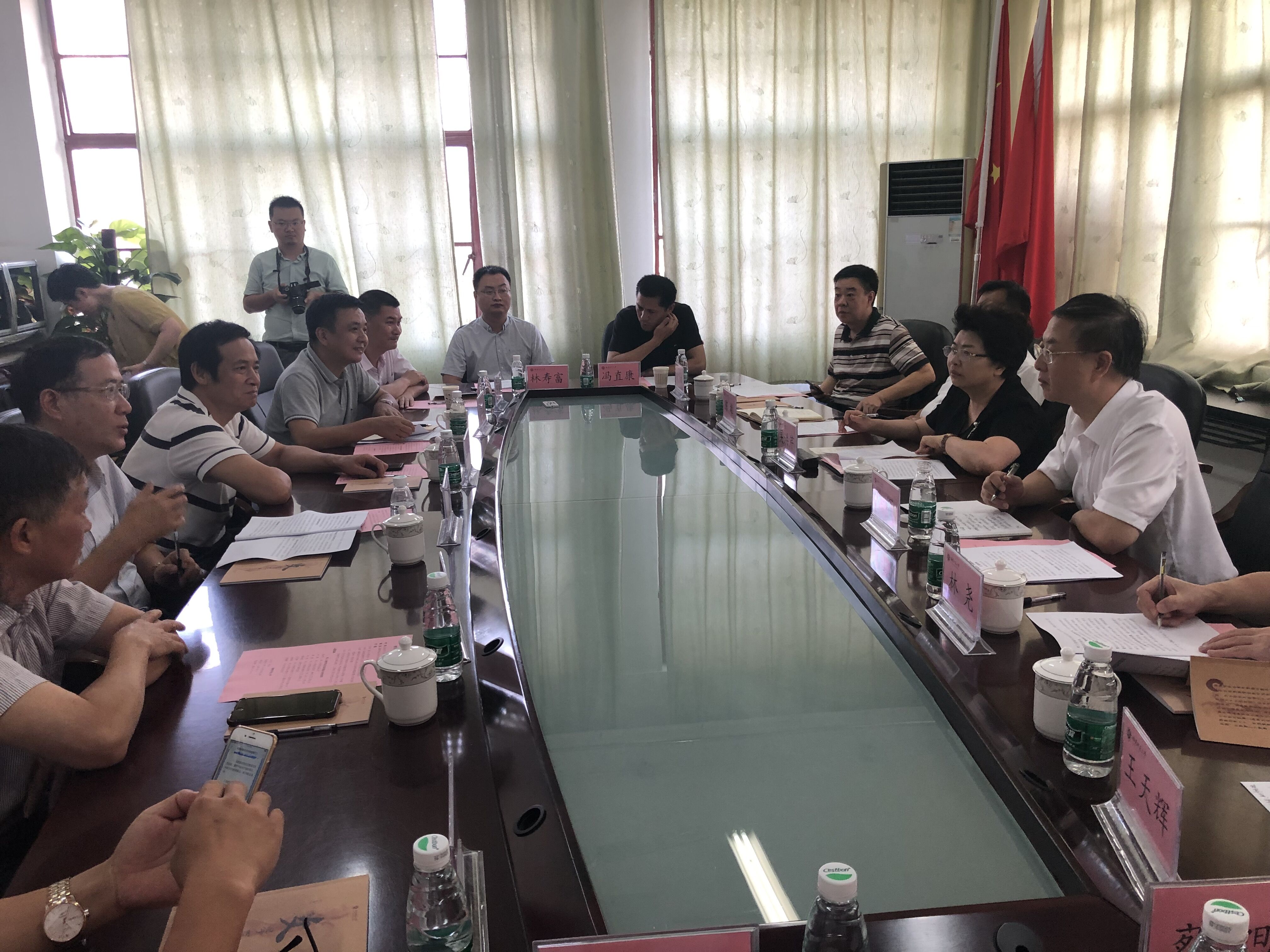 检查组首先实地考察了湿润亚热带山地生态省部共建国家重点实验室培育基地以及地理科学学院教师工作室,听取了地理科学学院贯彻落实“一法一办法”的相关做法以及取得成效的汇报。随后检查组来到文学院,详细了解文学院与台湾中华文化教育学会合编出版中学教材的有关情况,并参观两岸文学教育与交流教师团队成果展。