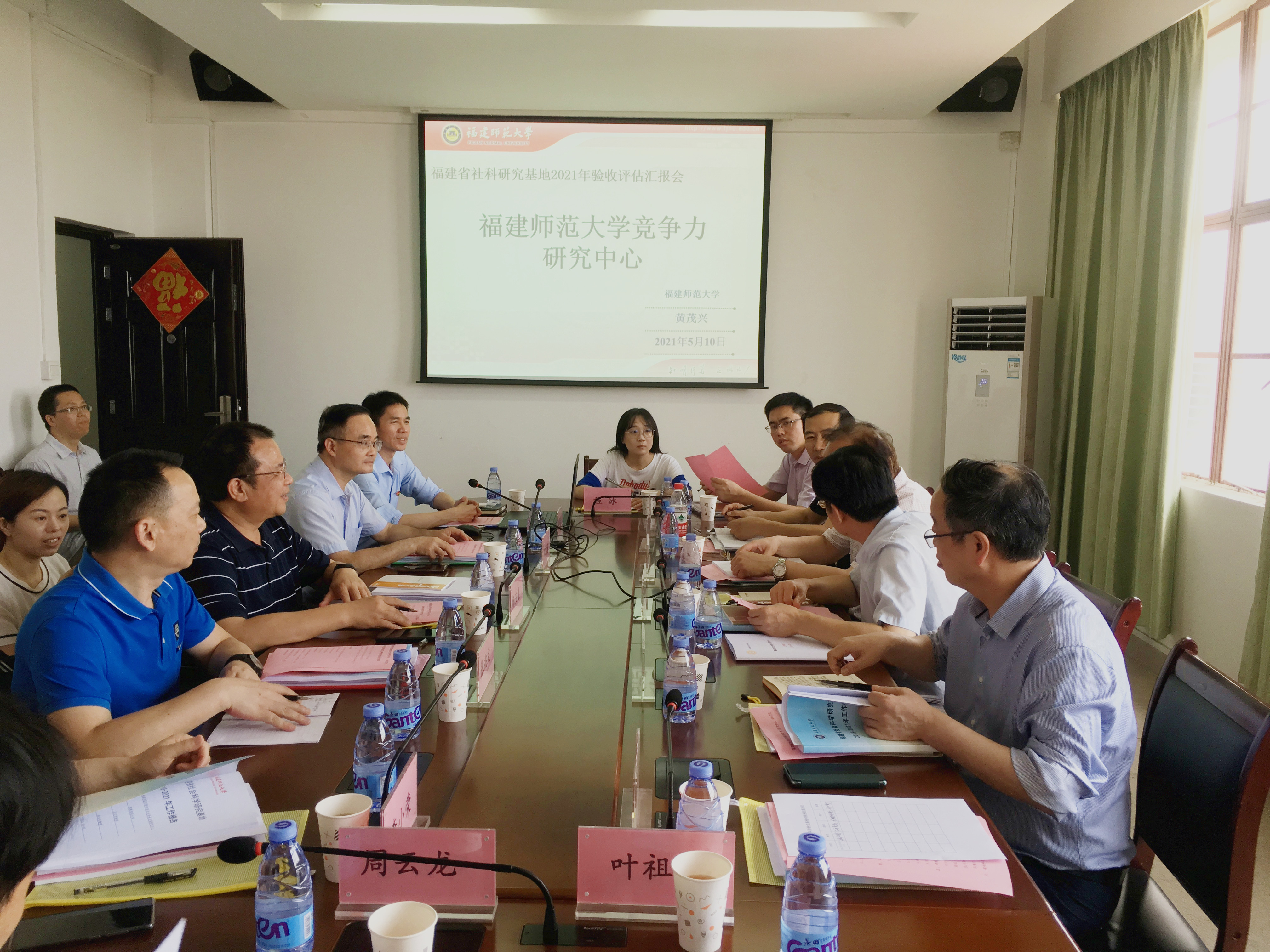 评估会于5月10日在我校仓山校区文科楼召开。省社科联党组成员、秘书长、省社科规划办主任陈飞,省社科规划办副主任肖孟刚,4位评估专家组成员:福建社会科学院副院长刘小新教授、厦门大学一带一路研究院常务副院长陈武元教授、福建师范大学协和学院院长张华荣教授、福建社会科学院科研处处长吴肇光研究员,我校杨玉盛副校长、社科处、竞争力研究中心、中华文化传承发展研究中心负责人等参加了会议。