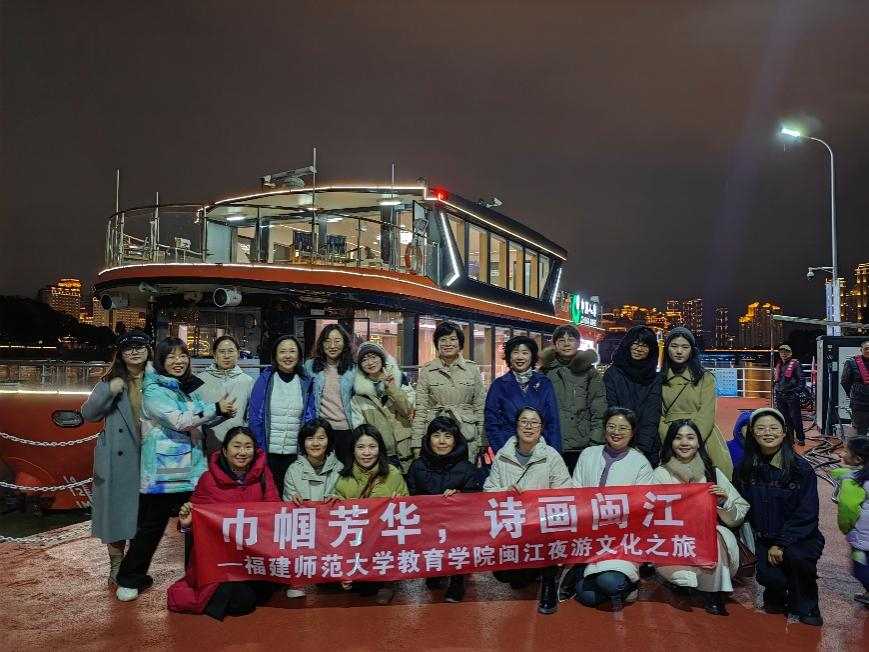 教育学院开展“巾帼芳华,诗画闽江”闽江夜游文化之旅,带领教职工们乘船欣赏闽江两岸美景,品味闽水文化。学院领导班子与全体女教职工参与活动。