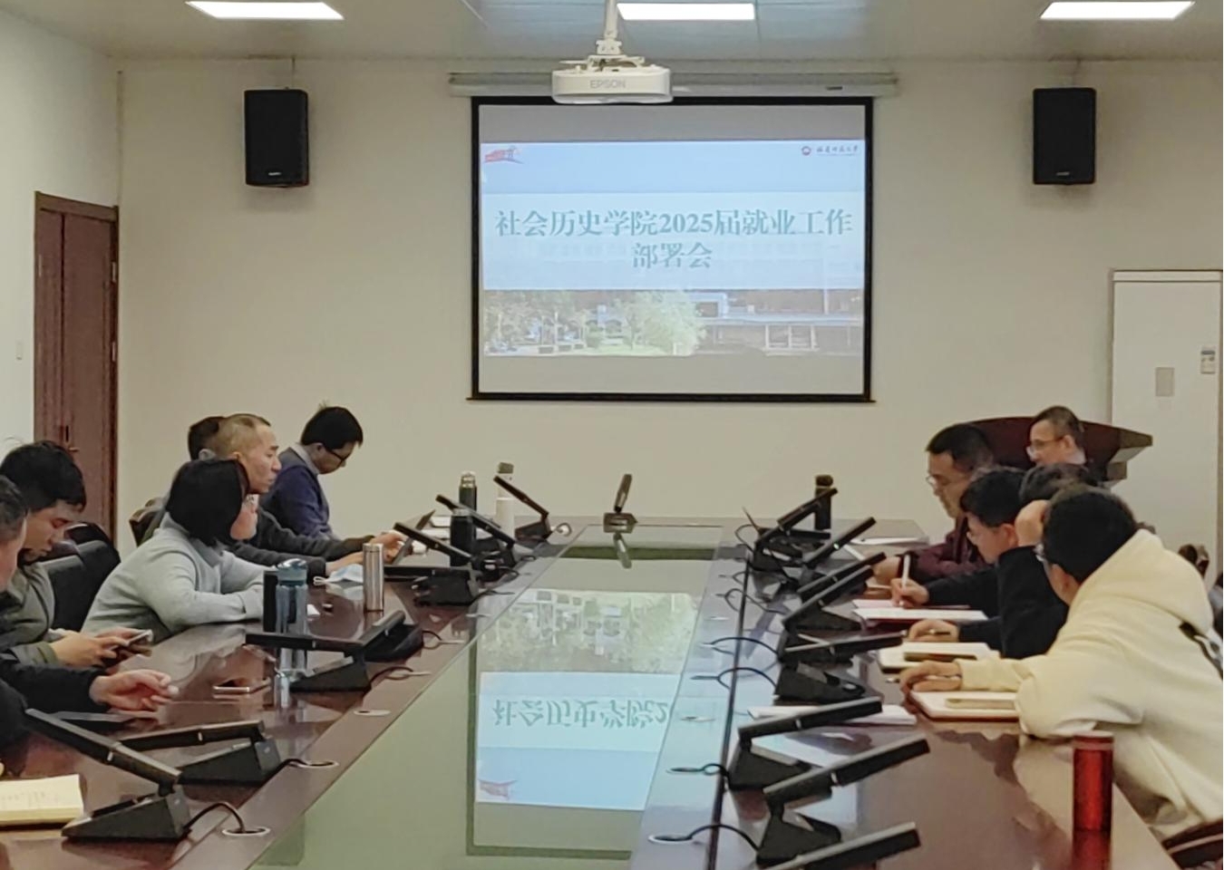 近日,社会历史学院召开2025届毕业生就业创业工作推进会,学院党委书记陈尚旺、院长孙建党、副书记范瑞锭、副院长黄建兴、各系主任、各专业和各科室负责人参加会议。