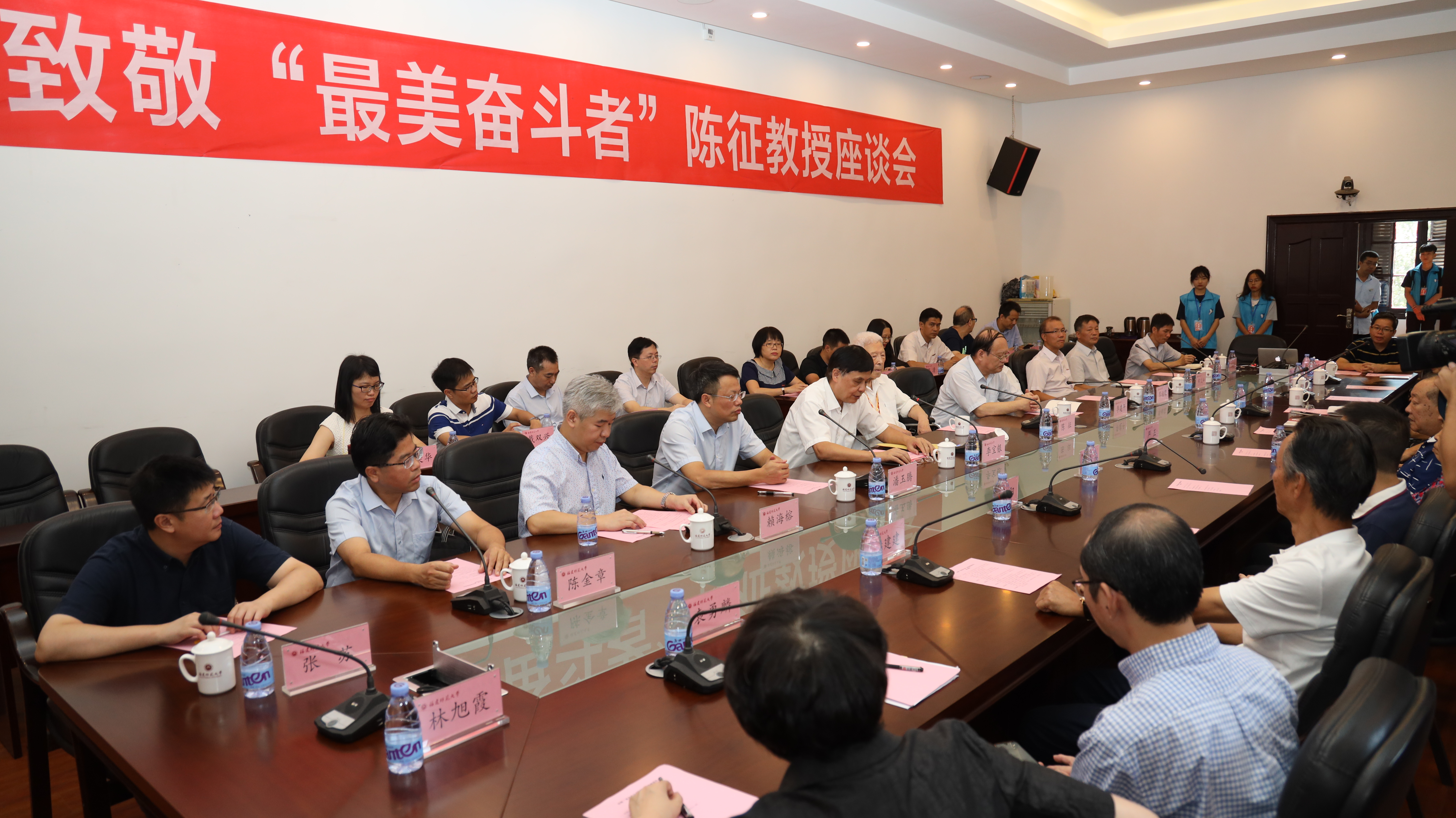 座谈会于9月26日上午在仓山校区胜利楼第三会议室举行。中共中央宣传部首批哲学社会科学界德业双馨专家学者、2018年度国内唯一“世界马克思经济学奖”获得者、全国“最美奋斗者”称号获得者、我校原校长陈征教授,校领导李宝银、潘玉腾,赖海榕,原校领导李建平、廖福霖,学校相关部处负责人,校友代表,以及经济学院、公共管理学院、马克思主义学院、法学院师生代表等近50人参加了活动。会议由副校长赖海榕主持。