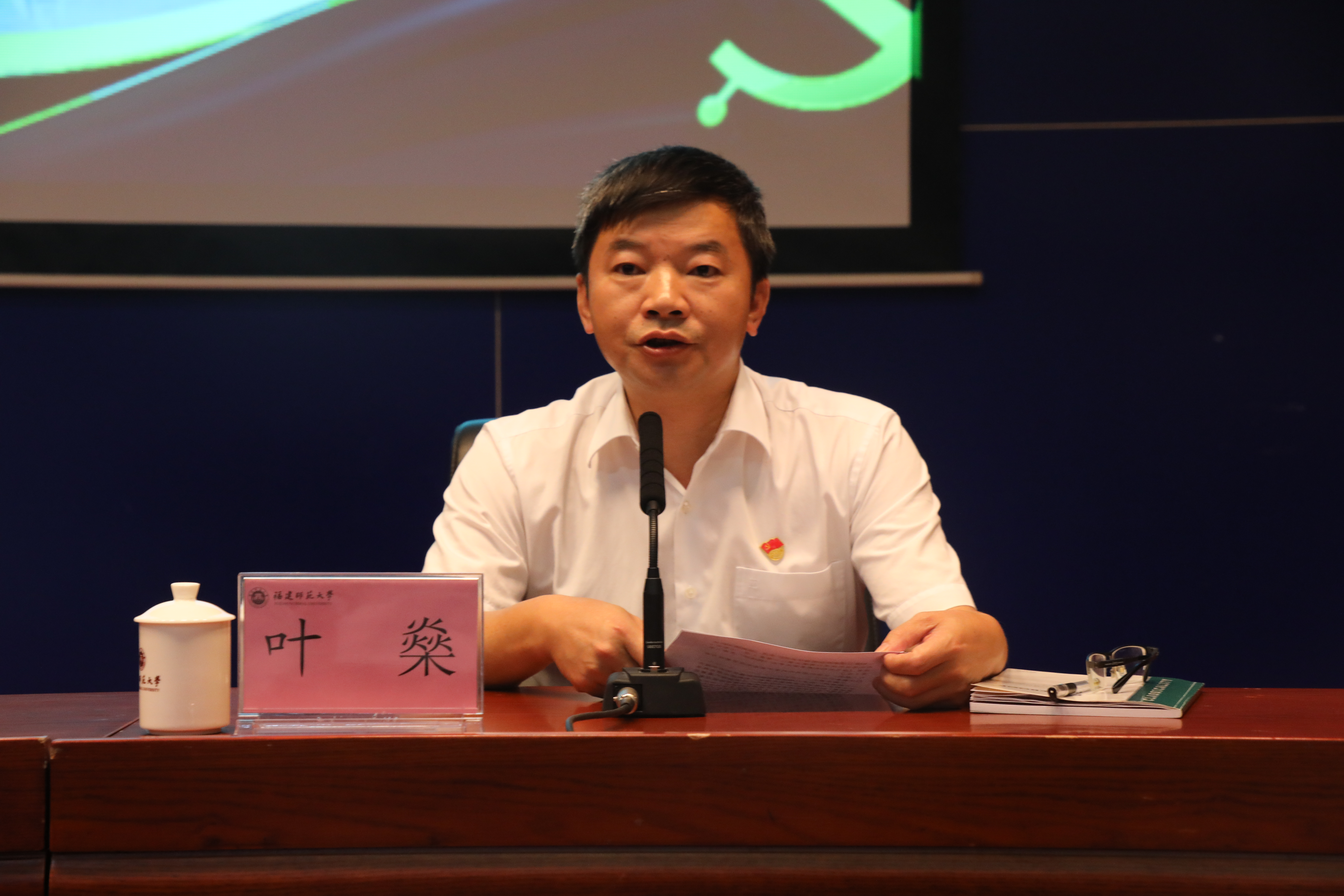 9月27日下午,我校在旗山校区图书馆学术报告厅举行“不忘初心、牢记使命”主题教育第三专题集中辅导会。校领导,全校中层干部,教师党支部负责人等参加了会议。校党委副书记叶燊主持报告会。