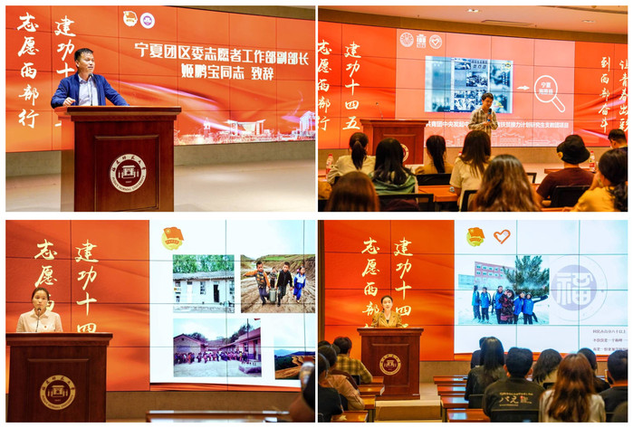 近日,2021年宁夏大学生志愿服务西部计划宣讲团一行9人,在宁夏团区委志愿者工作部副部长姬鹏宝、福建省青年志愿服务中心副主任吴敏玲带领下来我校开展推介宣讲会,深化闽宁协作,引导更多福建大学生参与西部建设。宣讲会上,姬鹏宝详细介绍了宁夏区情、团情以及宁夏关于西部计划的相关政策,并为现场师生答疑。许继聪、吕钟霞、俞欣悦三位福建籍志愿者宣讲了在宁工作故事与感悟。会上还播放了宣传片《宁夏·筑梦兴业的热土》、宁夏共青团志愿服务《将爱点燃》MV以及宁夏大学生志愿服务西部计划政策宣传片等。(校团委)