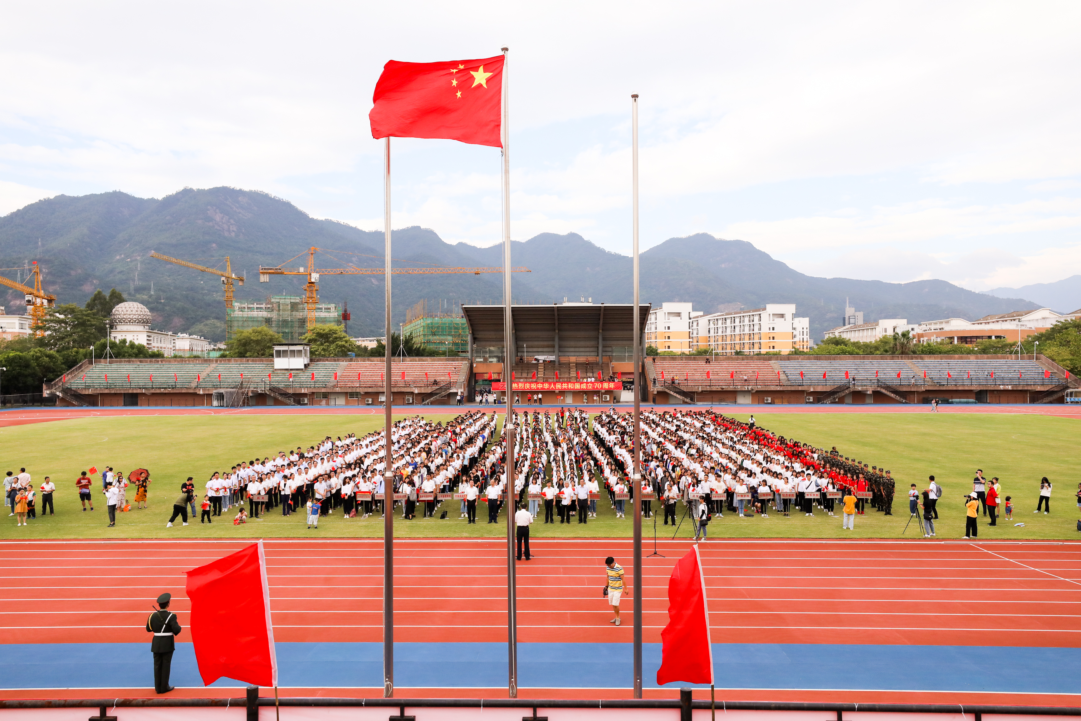 10月1日上午,我校在旗山校区东区田径场隆重举行庆祝中华人民共和国成立70周年升国旗仪式。校领导李宝银、王长平、叶燊、黄清波、赖海榕、涂荣,机关部处、馆、中心、集团、医院、公司主要负责人,各学院党政主要负责人、分管学生工作负责人,全体辅导员,学生代表,共计1000余人参加了活动。校长王长平主持仪式。