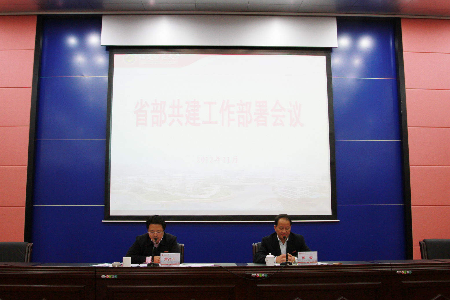 会上,黄汉升校长代表学校通报了福建省人民政府和教育部共建福建师范大学的有关情况,对开展省部共建工作进行动员部署,同时简要回顾和总结了105周年校庆工作。他指出,11月24日,福建省人民政府、教育部签署共建福建师范大学协议,是学校发展进程中一个具有里程碑意义的历史性时刻,学校的历史翻开了崭新的一页。成功跻身省部共建高校行列,得益于省委省政府的正确领导和省委教育工委、省教育厅的关心支持,得益于历代师大人奠定的坚实基础,得益于全校师生的辛勤劳动和艰辛付出,对此学校表示衷心的感谢。他强调,省部共建不是荣誉奖励,更不是宣传口号,而是具体的目标、实在的行动。全校上下一定要倍加珍惜机遇,加倍努力工作,充分发挥省部共建的体制优势,立足学校发展基础和特色优势,找准着力点和突破口,既着眼长远,抓住牵动全局的重大问题,统筹谋划,整体推进;又立足当前,从最迫切、最有条件做的事做起,有效突破,努力开创新局面。