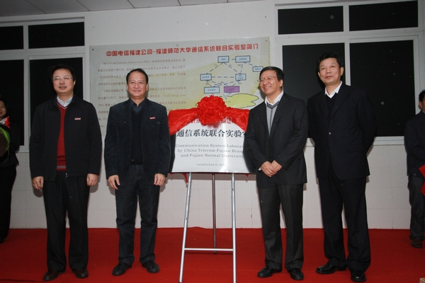 11月28日,中国电信福建公司与我校合作建立的通信系统联合实验室揭牌并正式投入运行。中国电信福建公司段建祥总经理、张明副总经理等一行6人,我校党委罗萤书记、黄汉升校长、李敏副校长,光电与信息工程学院负责人及师生代表参加了揭牌仪式。揭牌仪式由李敏副校长主持。