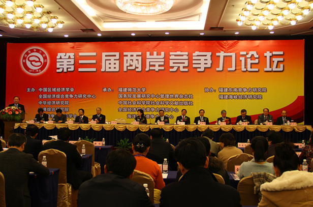 来自台湾的中华经济研究院、台湾综合研究院、台湾竞争力论坛学会、台湾大学、中山大学、成功大学、海洋大学等智库和高校的研究专家,以及大陆的国务院发展研究中心、中国社会科学院、国家发展和改革委员会、国家行政学院、国家税务总局、北京大学、厦门大学、福建省社科院等有关国家部委和高校的专家学者,人民日报、经济日报、中国经济导报、中国社会科学报、青岛日报、青岛电视台等数十家新闻单位的代表共200多人参加了论坛。前海基会董事长江丙坤先生、国务院发展研究中心副主任韩俊研究员,山东省人民政府台湾事务办公室主任张雪燕女士,青岛市人民政府副市长刘明君先生,中华经济研究院董事长梁启源先生,台湾综合研究院院长吴再益先生,台湾竞争力论坛理事长彭锦鹏先生,现代财经基金会董事兼执行长郑优先生,福建省新闻出版局党组书记李闽榕教授,我校校长黄汉升教授出席开幕式并致辞,原校长李建平教授、经济学院师生代表参加了开幕式。会议由中国区域经济学会副理事长、福建省新闻出版局党组书记李闽榕教授主持。 江丙坤先生在开幕式上作了“两岸关系发展与展望”的专题演讲,他首先对本届论坛的召开表示热烈祝贺,并分别从两岸经贸发展、两岸关系新局、国民党主政下的两岸关系、经济合作架构协议的内涵、第八次江陈会谈、两岸关系展望等六个方面系统阐述了两岸关系的历史进程以及所取得的突破性进展,希望通过论坛的举办,融通两岸专家学者的智慧,为两岸关系继续朝着“和平发展稳步推进,携手提升竞争力”做出贡献。 国务院发展研究中心副主任韩俊研究员在致辞中对论坛的顺利召开表示祝贺。他说,两岸同胞大交流、大合作、大发展的局面已经形成,近年来两岸经贸双向良性互动,尤其在当前世界经济政治格局发生深刻变化的情况下,海峡两岸应加速经贸的深度合作,共同提升两岸竞争力。此次由两岸有关机构共同举办的两岸竞争力论坛,为推动两岸交流合作搭建了一个很好的平台。 国务院发展研究中心副主任韩俊研究员在开幕式上致辞 校长黄汉升教授代表大陆8家主、承办单位致辞,他简要介绍了学校的办学历史、省部共建的发展机遇、多学科交叉优势、高水平研究平台和高素质人才队伍,积极开展涉及国家、地方经济社会发展的重点、难点、热点问题研究情况,以及我校经济学科逐步形成了省域经济综合竞争力、环境竞争力、国家创新竞争力、低碳经济竞争力等特色研究领域,产生了一批很有影响的研究成果。他指出,加强两岸深度交流合作、携手提升大中华竞争力是事关中华民族伟大复兴的重大课题,通过论坛的举办,凝聚智慧,推动两岸合作交流,为携手提升两岸竞争力,提升中华民族的国际竞争力贡献力量。 江丙坤先生与黄汉升校长、李建平原校长亲切合影 论坛围绕 “加强两岸深度交流合作 携手提升大中华竞争力”的研讨主题,就后ECFA时代两岸经贸深度合作的途径与方法、国际形势新变化对两岸竞争力的影响、提升中华文化竞争力研究、提升海洋经济竞争力研究等议题展开了热烈的交流和讨论。 两岸竞争力论坛是由两岸的决策咨询机构、社会团体和高等学校共同倡导创立的民间学术交流活动,已日益成为两岸共商提升中华民族国际竞争力大计的重要论坛。每年举办一次,并轮流在中国大陆和台湾岛内举办。首届两岸竞争力论坛于2010年7月8日在福州召开,第二届两岸竞争力论坛于2011年7月17日在台北召开,在两岸学术交流中产生了广泛而积极的影响。此次论坛层次高、影响面广,对于进一步提升我校的知名度和美誉度,加强我校与台湾智库、高校之间的学术交流与对话,以及促进我校经济学学科的建设都具有重要的意义。 (经济学院)