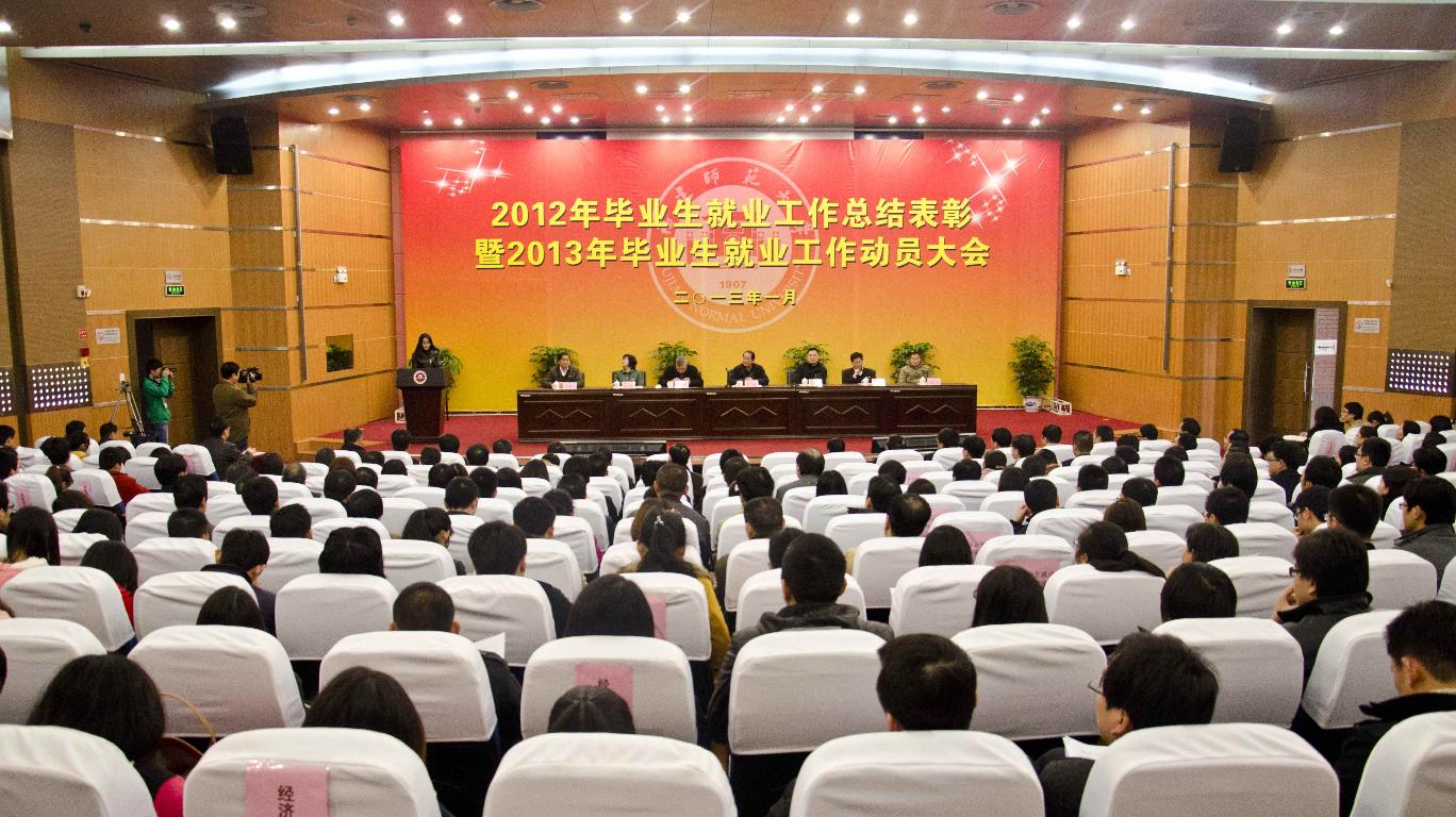 1月7日下午,我校在旗山校区学术大讲堂召开2012年毕业生就业工作总结表彰暨2013年毕业生就业工作动员大会。省大中专毕业生就业工作办公室郝军主任,校领导罗萤、林和平、王建南、李敏、凌启淡,校长助理郭警修,校、院两级毕业生就业工作领导小组成员,受表彰的先进个人,全体辅导员以及学生代表共500多人参加了会议。会议由校党委林和平副书记主持。