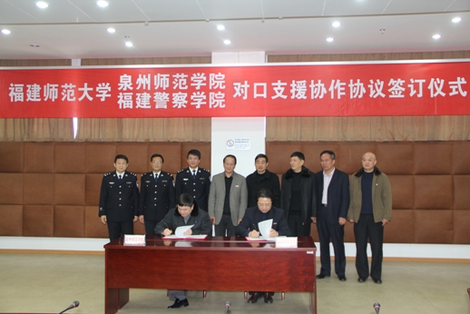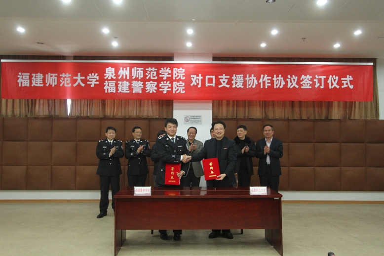 1月18日,我校分别与泉州师范学院、福建警察学院签订对口支援协作协议。校党委书记罗萤、校长黄汉升、副校长许明,泉州师范学院党委书记游小波,院长黄子杰,副院长王晓东,院长助理、组织部部长陈亚兵,福建警察学院院长陈勇、副院长刘瑞榕、副院长薛峰出席仪式。黄汉升代表我校,分别与泉州师范学院院长黄子杰、福建警察学院院长陈勇签订了协议。