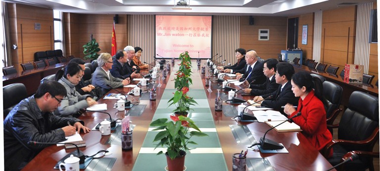 2月23日,美国加州州立大学校董Mr.Jim Waton一行在福州市副市长黄忠勇的陪同下参访我校。副校长许明,学校办公室、学生工作处、教务处、国际合作与交流处相关负责人参加了会见。 许明热情接待了来访客人,并向来宾介绍了我校对美交流的基本情况。Mr.Jim Waton感谢我校的热情接待,并简要介绍了加州州立大学的校情,希望两校围绕各自的优势学科开展合作与交流。随后,双方就具体项目进行了商谈。 (国际合作与交流处 施 伟)