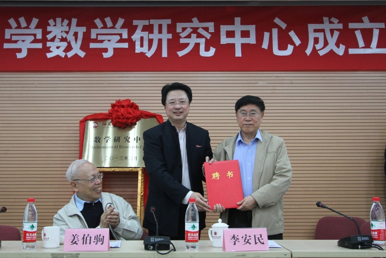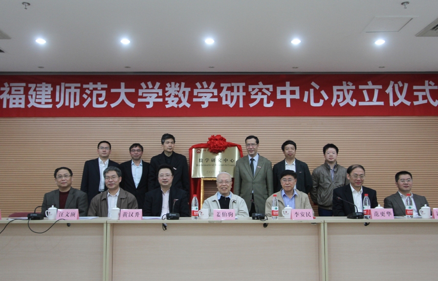 姜伯驹院士和黄汉升校长共同为福建师范大学数学研究中心揭牌。黄汉升校长为中心学术委员会成员颁发了聘书。