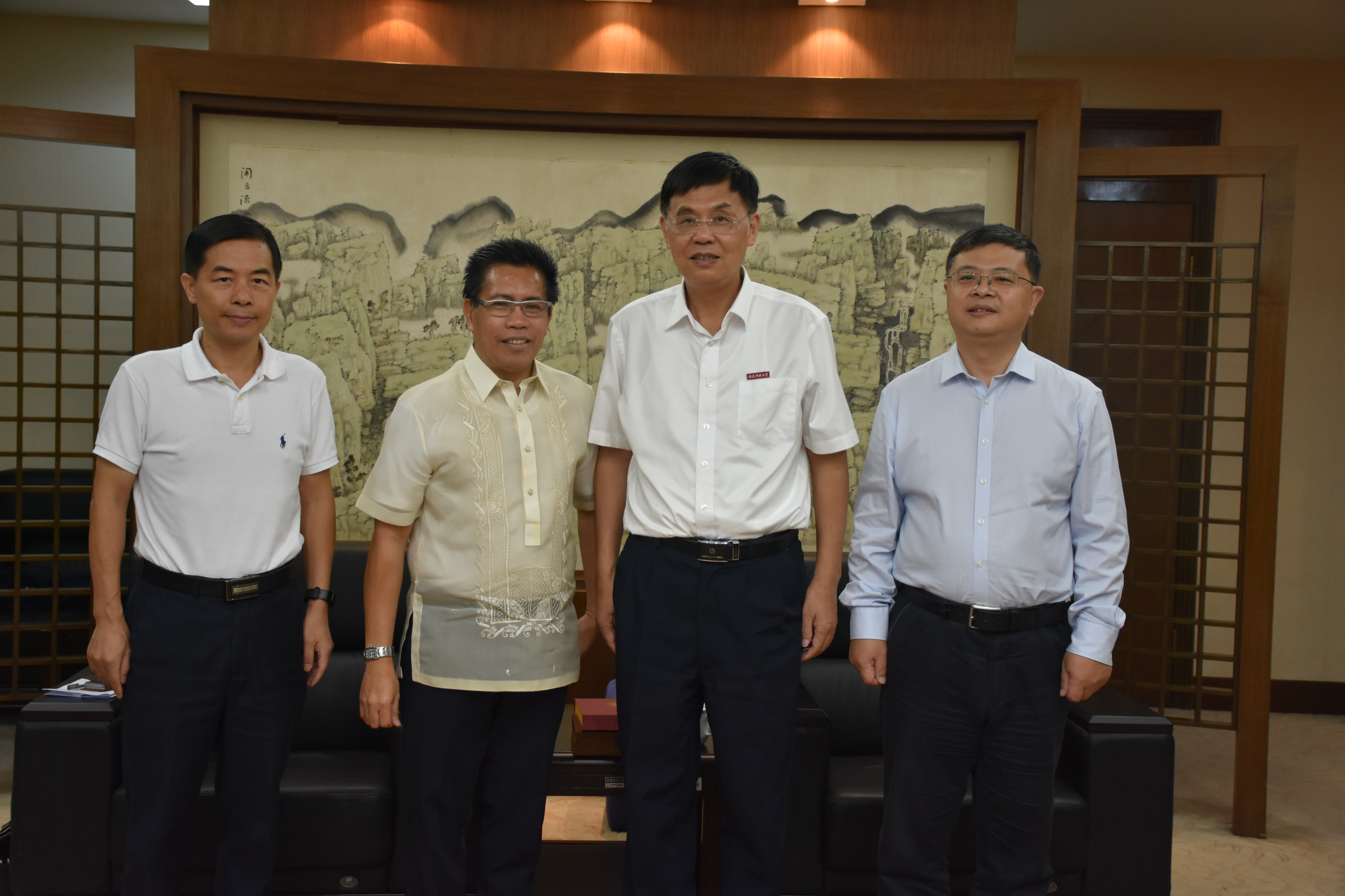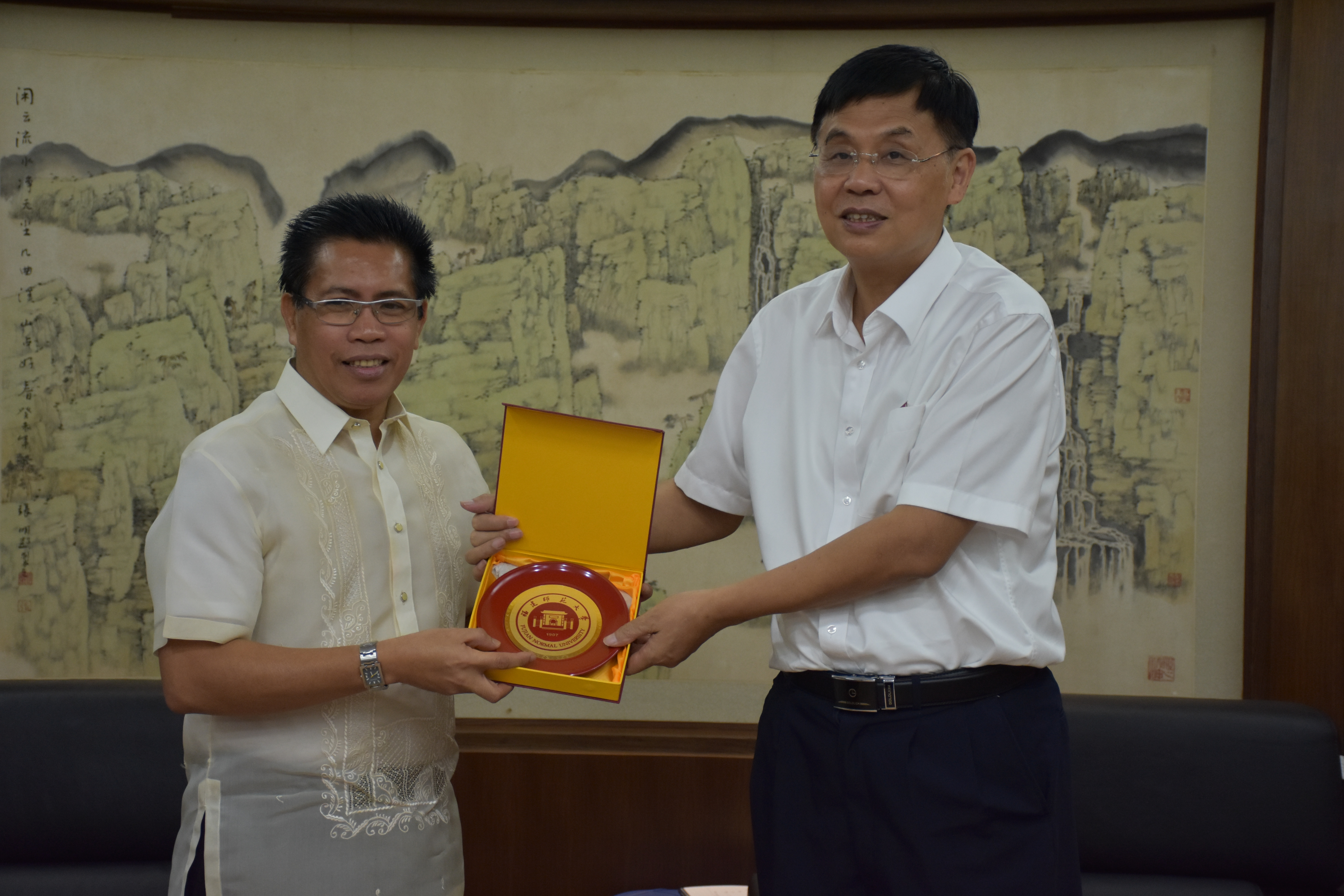 李宝银代表学校热烈欢迎付昕伟一行的来访,简要介绍了学校的办学历史、办学规模、学科发展、对外办学等方面的情况。他指出,学校与菲律宾政府、高校以及社会机构在教育、科研方面有着长期合作的历史,对促进中菲友好交流作出了积极贡献。他说,当前中菲各项交流日益广泛,不断走向深入,为学校与菲律宾有关方面的合作交流创造了更为有利的条件。他表示,目前学校在中国和菲律宾政府的关心下,在旅菲校友许明良先生的支持下,成立了专门面向菲律宾学生开展硕士教育的索莱达学院。学校将在政策、资金以及管理人员配备等方面给予倾斜支持,加快推进旗山校区研究生教学科研综合楼建设,努力为包括菲律宾籍在内的留学生提供更好的学习生活环境。