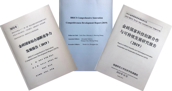 会议期间,我校和中国科学技术交流中心、俄罗斯国立高等经济大学等单位科研人员联合发布了《金砖国家综合创新竞争力发展报告(2019)》、《“金砖+”国家综合创新竞争力发展报告(2019)》(英文)、《金砖国家科技创新合作与可持续发展研究报告(2019)》等3份研究成果,提出了推动金砖国家科技创新合作的政策建议。10月20日下午,该项目联合课题组还举行了编委会会议,就深化项目成果研究和编写、完善研究质量和水平进行了研讨。