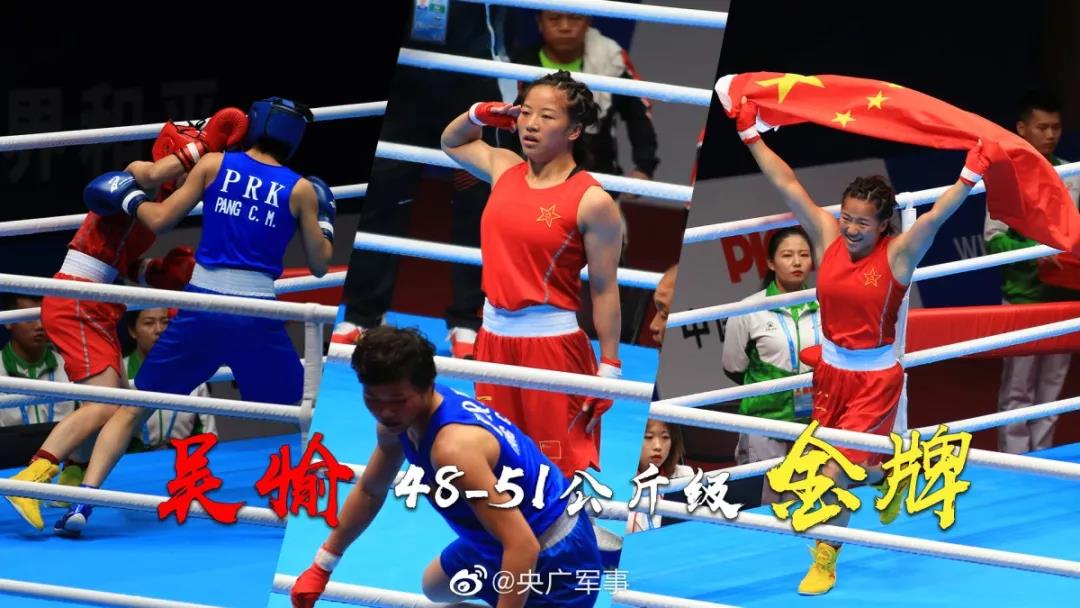 10月25日,2019年世界军人运动会女子拳击项目展开了金牌争夺战。中国八一拳击队队员、体育科学学院2018级运动训练专业学生吴愉勇夺女子51公斤级金牌。