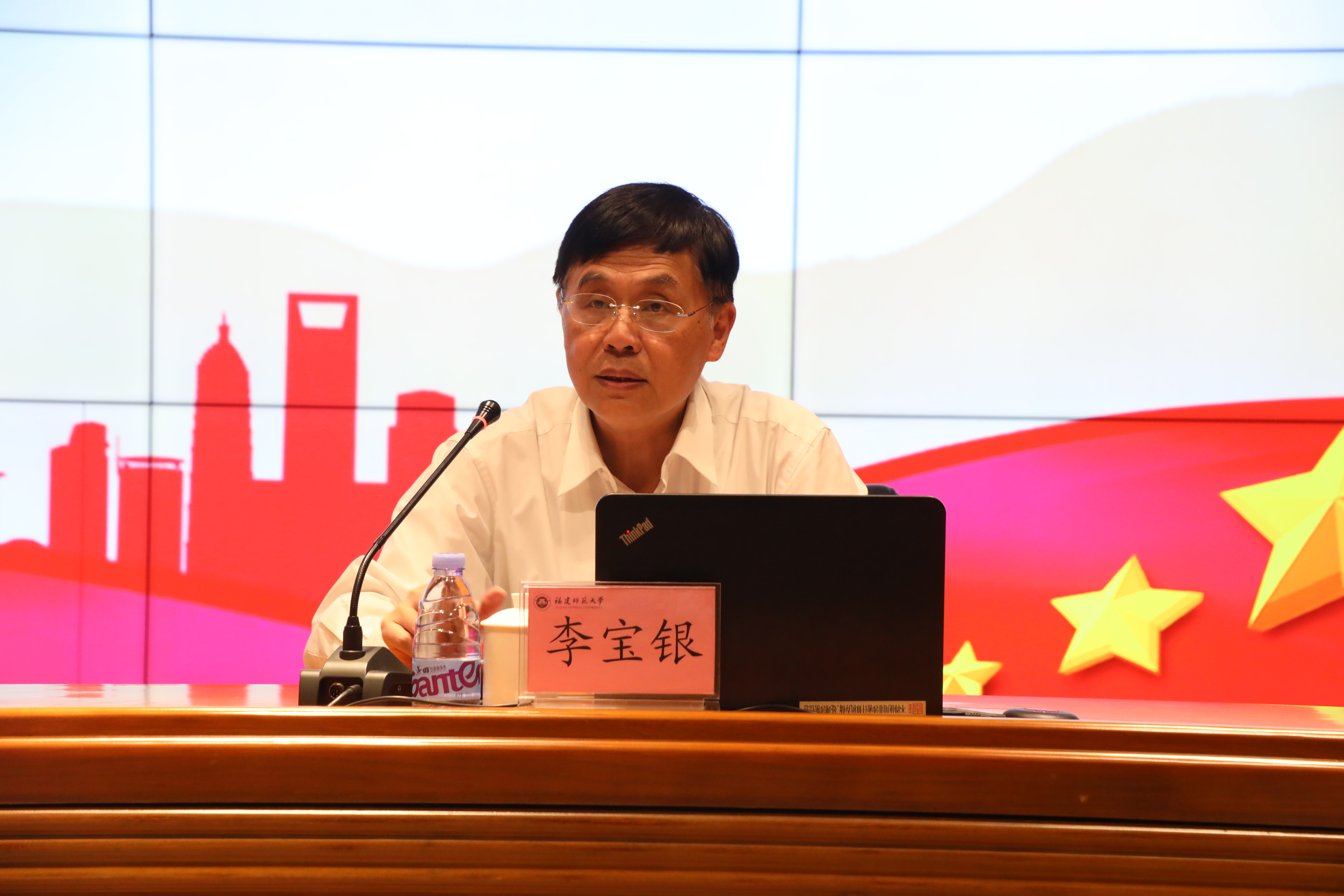 10月31日下午,校党委书记李宝银在旗山校区宏达厅为师生上主题教育专题党课。省委第十一巡回指导组组长陈乙熙,指导组成员张弦、吴忠正莅临指导。校领导叶燊、黄清波、涂荣,全校中层干部,部分教师、学生党支部负责人代表等180余人听取党课。
