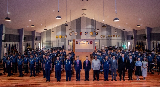 中国驻菲律宾大使馆警务联络官郑学、戴志鹏,菲律宾警察总署国都区警察局局长Reynaldo M Tamondong准将,菲律宾国家警察总署个人培训项目发展局局长Joel A Villanueva上校,菲律宾国家警察总署国都区特别培训局局长Marlon B Oloan上校,菲律宾国家警察总署区域学习与理论发展局局长Julius D Guadamor上校。红溪礼示大学副校长Engr. Jose Macapagal Jr., 孔子学院中方院长许雷、菲方院长裴刚,中文教师以及参加培训的来自国都区各警区的警察共计100余人参加了开班仪式。