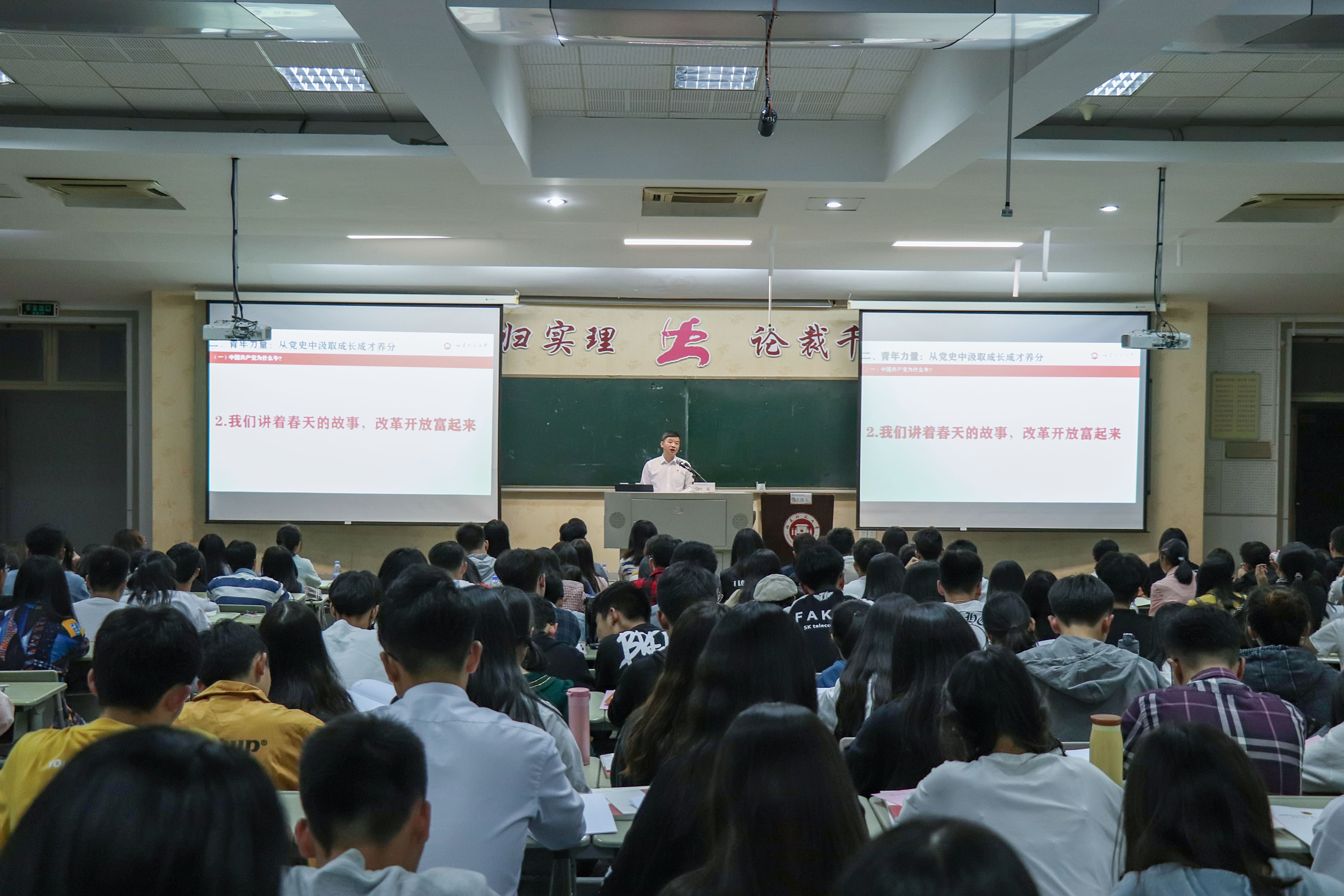 叶燊以《坚定理想信念厚植爱国情怀做可堪民族复兴大任的时代新人》为题,从青年画像、青年力量、青年担当三个维度,鼓励同学们坚定理想信念,厚植爱国情怀,做可堪民族复兴大任的时代新人。