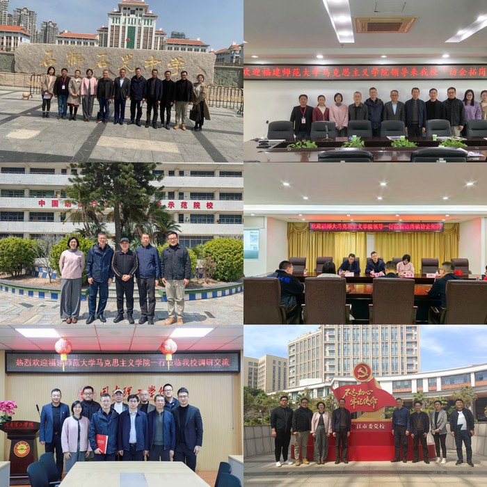 近日,马克思主义学院领导张爱民、鄢奋、涂莹带队前往泉州开展访企拓岗促就业专项活动,实地考察人才需求和就业环境,推动学院就业工作提质增效。学院领导一行走访了石狮市石光中学、泉州纺织服装学院、闽南理工学院、中共晋江市委党校、石狮市锦尚镇人民政府、泉州鹏泰服饰有限公司等多家单位,详细介绍了马克思主义学院学科建设、人才培养、社会服务等情况,并深入了解了用人单位的发展概况和人才需求情况。双方围绕毕业生就业供需对接、实习见习基地建设、深化校地合作等方面进行了深入交流。 (马克思主义学院)
