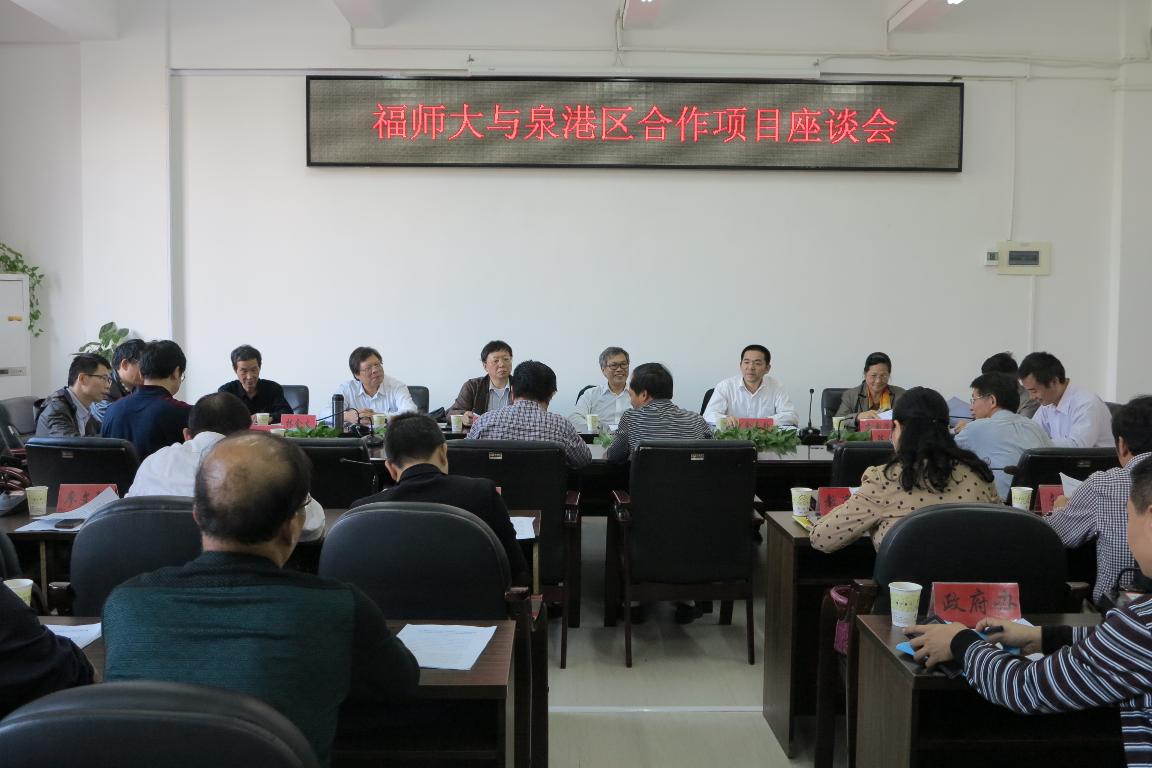 当天下午,我校与泉港区人民政府举行校地合作项目座谈会,双方就合作共建泉港石化研究院、提升泉港美发中学办学质量和开展北管传承保护等项目有关工作进行了深入探讨,对进一步推进校地合作取得共识。双方认为,要立足既有项目,着眼长远发展,积极围绕泉港区经济社会发展中心工作和福建师范大学在学科、科技、人才等方面的优势,寻求新的切入点,不断拓展校地合作新领域,共同开创校地合作创新发展典范。