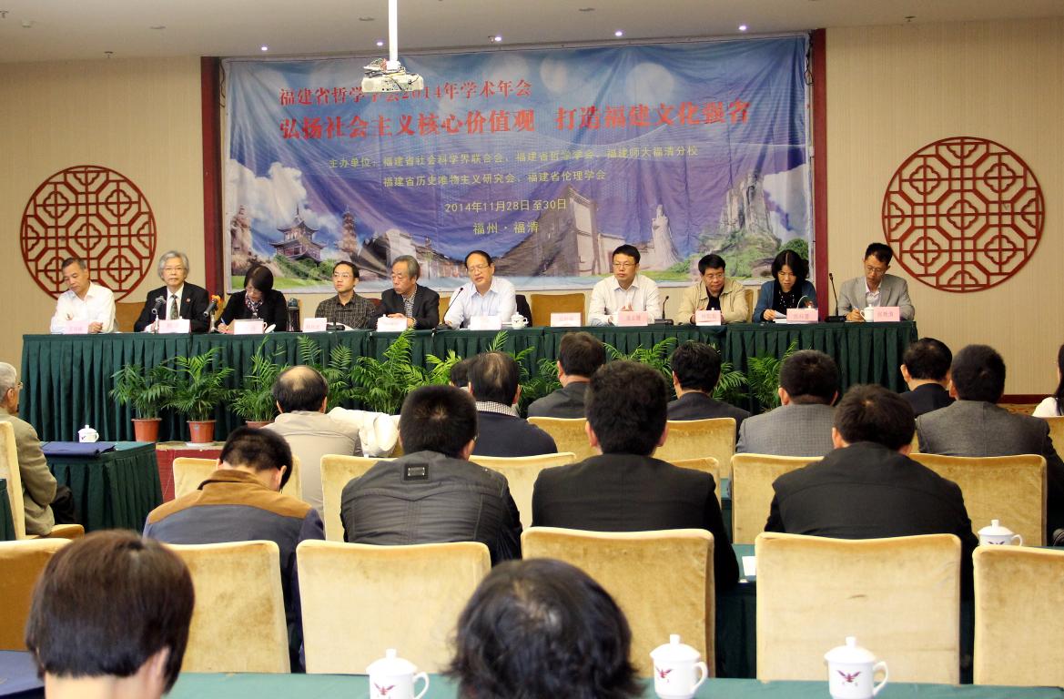年会上,来自厦门大学、福建省委党校、福建师范大学、福州大学、华侨大学等高校的150多名专家、学者齐聚一堂,围绕会议主题——“弘扬社会主义核心价值观,打造福建文化强省”展开热烈研讨。潘玉腾教授作了《弘扬福建传统文化,推进社会主义核心价值观建设》的主旨发言。他指出,在培育和践行社会主义核心价值观的进程中,福建要以弘扬八闽优秀传统文化为切入点,做好八闽优秀传统文化与社会主义核心价值观的融合文章。