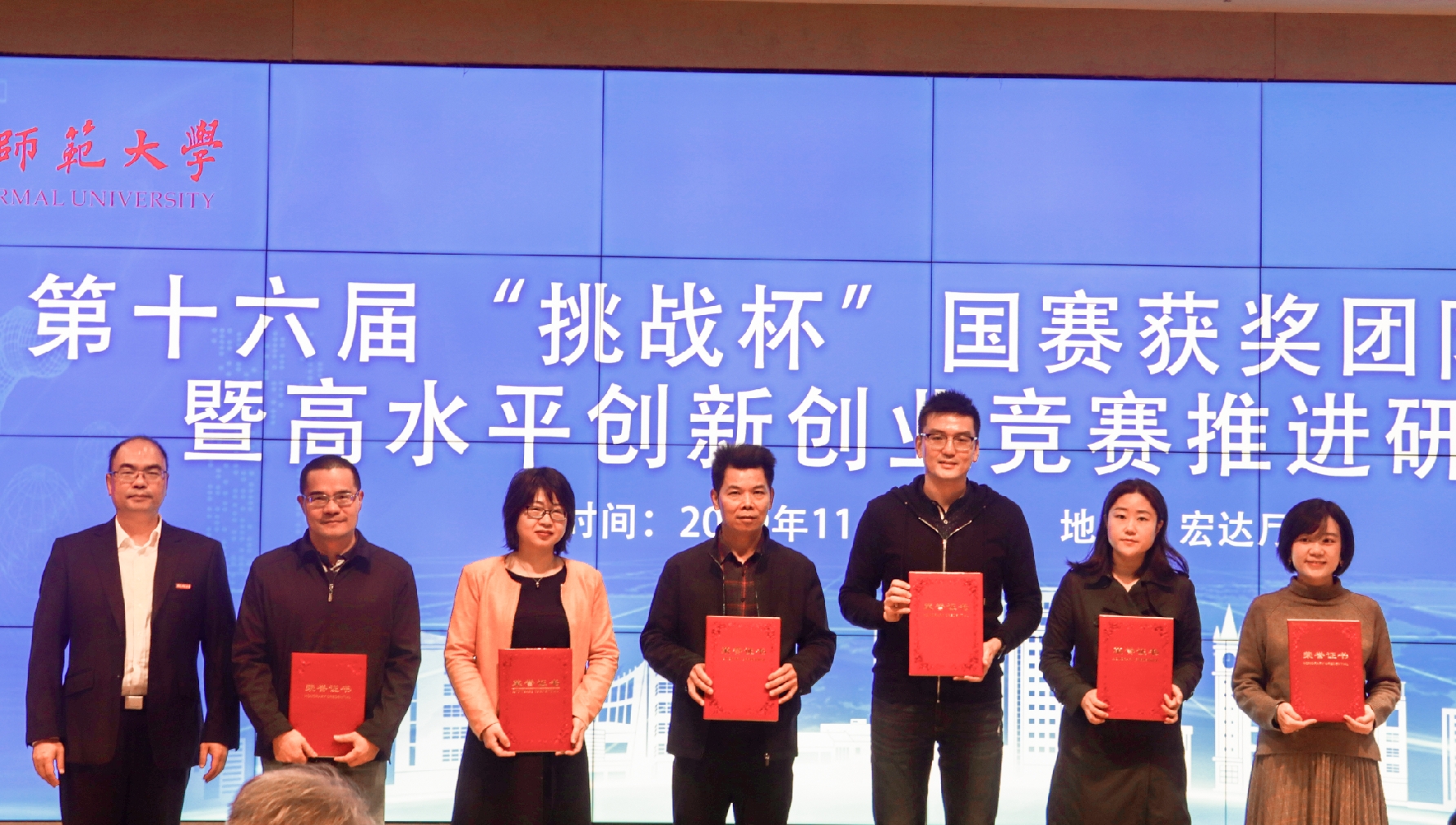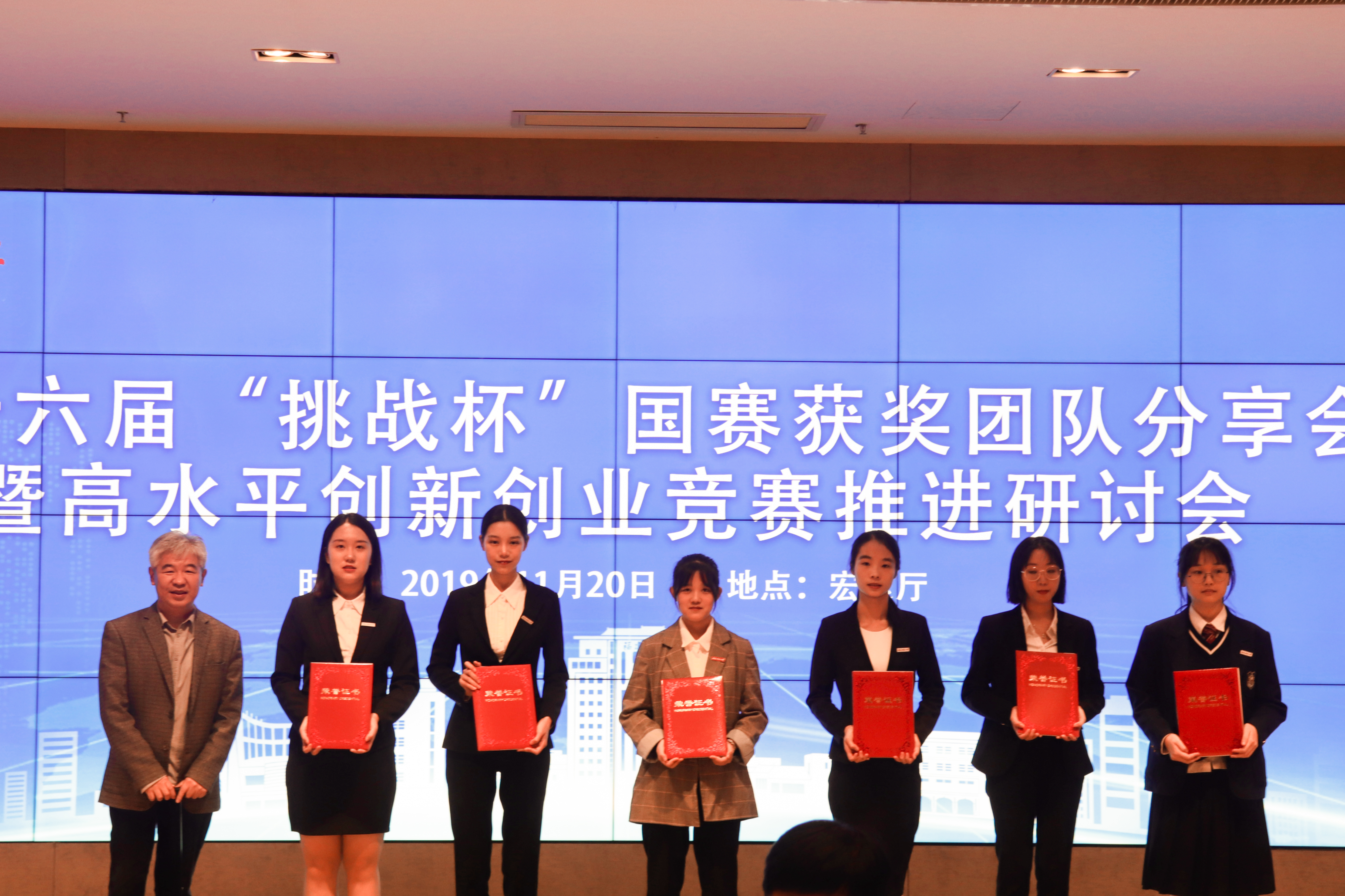 会上,校纪委书记黄清波宣读了学校对获奖团队的表彰决定;黄清波、赖海榕为获奖团队指导教师和学生代表颁发校长嘉奖令;李宝银为特等奖指导老师代表和学生代表颁发高端成果奖励金和奖学金。获奖团队学生代表郑青青、获奖团队指导教师代表祁新华、获奖团队学院领导代表黄宁及竞赛牵头部门校团委负责人戴少娟进行了主题发言,相关部处负责人就我校高水平创新创业竞赛推进工作进行了研讨交流。