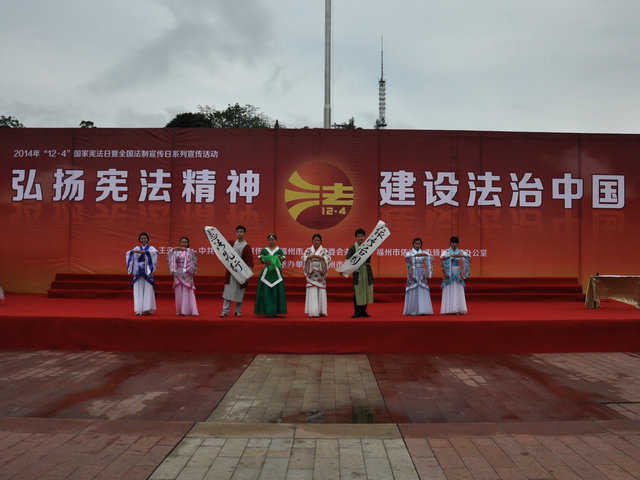 12月4日上午,由中共福州市委宣传部、福州市人大常委会办公厅、福州市依法治市领导小组办公室主办,福州市司法局承办的“弘扬宪法精神,建设法治中国”普法宣传活动在五一广场进行。众多市直部门以及近十所高校法学院参与了活动。作为活动的筹备单位之一,我校积极参与组织推动本次大型普法活动的开展。法学院校内教学实践基地指导老师及研究生、本科生在现场开展了法律咨询和文艺表演活动,并通过微博、学院“小廌儿”APP等新媒体平台在线上配合进行法制宣传与互动。