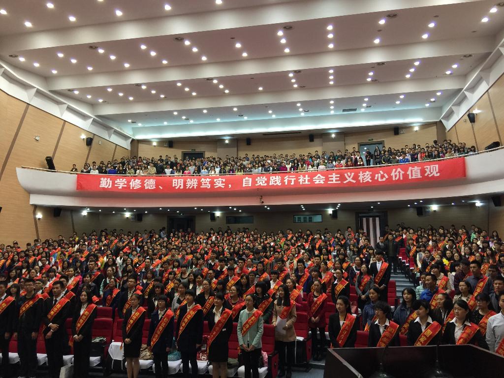 主持学校行政工作的副校长王长平教授受黄汉升书记的委托,发表了热情洋溢的讲话。他回顾总结了过去一年我校同学在学习、工作等各方面取得的丰硕成果,盛赞同学们积极向上、奋发进取,勤奋好学、争创佳绩,才气自华、勇于创新,勇于担当、乐于奉献。他希望全校广大同学自觉培育社会主义核心价值观,敢于有梦,勇于追梦;深入践行社会主义核心价值观,勤学修德,明辨笃实;积极弘扬社会主义核心价值观,胸怀天下,敢为人先。他鼓励同学们“扣好人生的第一粒扣子”,勤奋学习,严以修德,明辨是非,笃实做人,努力在实现中国梦的伟大实践中创造自己的精彩人生,书写无愧于时代的壮丽篇章!
