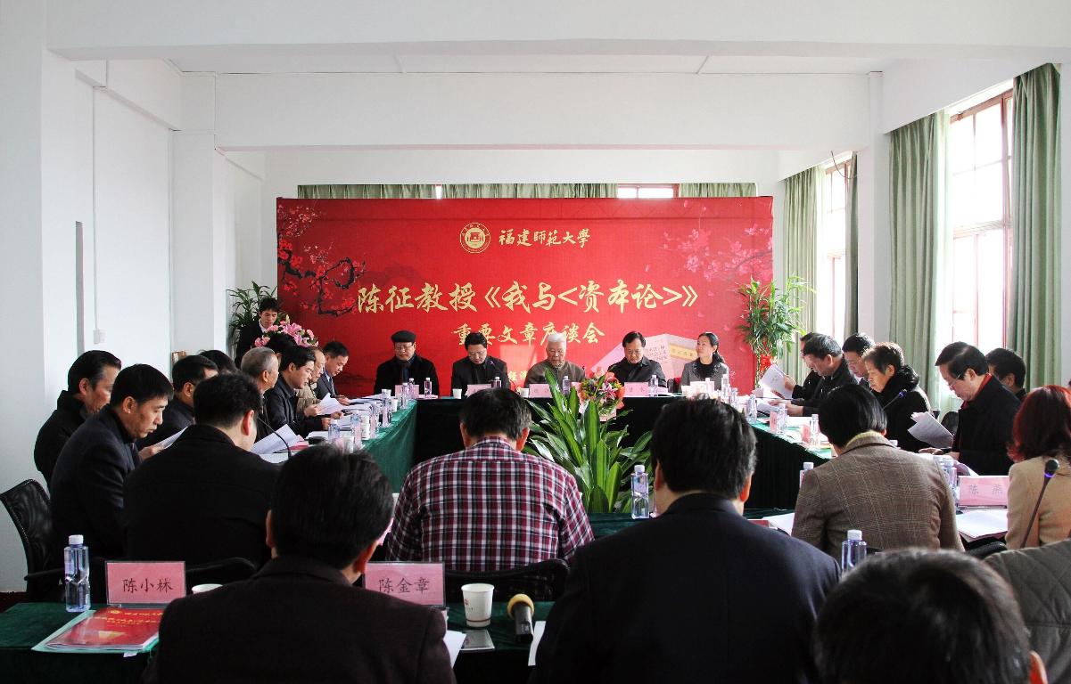 近日,我国著名马克思主义经济学家、原校长陈征教授在中国资本论研究会会刊《当代经济研究》2015年第1期发表了自述文章《我与<资本论>》,回顾了他六十多年来从事《资本论》研究的历程、方法以及取得的重大理论贡献,讲述了他研究生涯中许多先前不为人所知的动人故事,引发了经济学界的广泛关注与热烈赞誉。2月8日,陈征教授《我与<资本论>》重要文章座谈会在我校仓山校区文科楼举行。省委常委、省委政法委书记陈冬,省社科联党组书记、副主席冯潮华,省教育厅巡视员李金莲,省商务厅党组副书记、副厅长张秋,省人民政府发展研究中心副主任黄端,省财政厅副厅长修兴高,省水利厅副巡视员游祖勇,省委办公厅综合处处长黄建清,福州市马尾区政府常务副区长李利民,中国建设银行福建省分行国际业务部总经理陈朝阳,中国建设银行福州城东支行行长杨达远,闽江学院副院长赵麟斌教授,福州大学校长助理黄志刚教授,福建社会科学院原院长严正教授,福建农林大学原副校长张春霞教授等30多位在榕的校友代表,我校党委书记黄汉升,原校长陈征、李建平,原党委副书记廖福霖,福清分校党委书记潘玉腾,学校办公室、宣传部、校工会、马克思主义学院、公共管理学院负责人,以及经济学院师生代表共80多人参加了座谈会。座谈会由福建师范大学马克思主义研究院院长、原校长李建平教授主持。