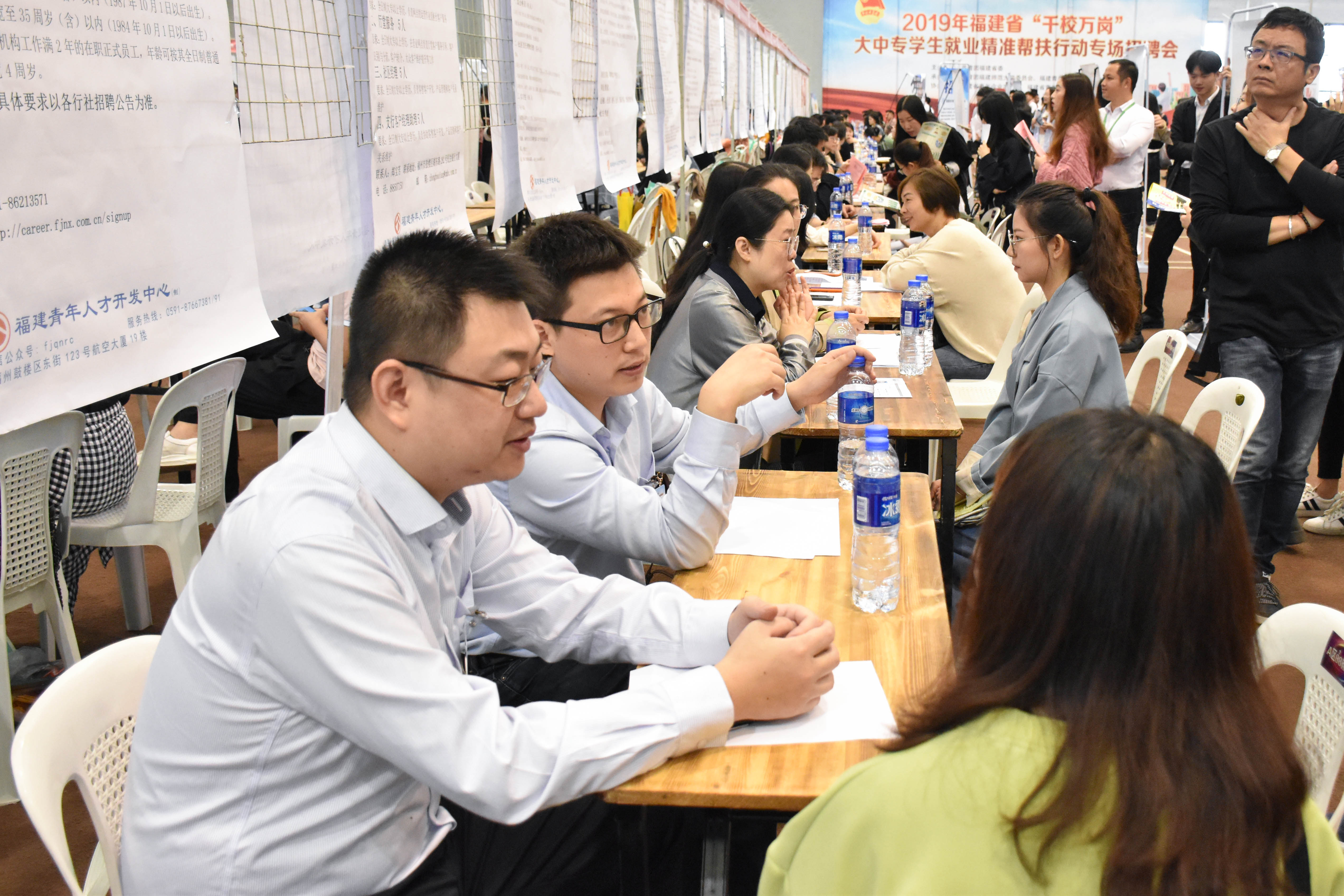 11月24日,由共青团福建省委主办、福建省青年人才开发中心和我校团委联合承办的2019年福建省“千校万岗”大中专学生就业精准帮扶行动专场招聘会在旗山校区室内田径场举行。本次招聘会共有来自包括中国人寿、民生银行、厦门国际银行、圣农发展、福光股份等知名企业在内的近200家单位参会,为毕业生提供6000多个优质就业岗位。共青团福建省委副书记连占记,副校长涂荣,校团委负责人,各学院分管学生工作负责人、毕业班辅导员参加了招聘会。