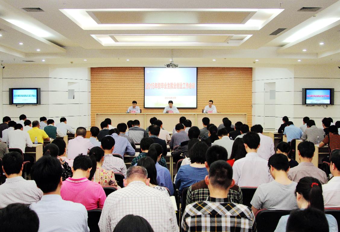 校毕业生就业工作领导小组组长、校党委书记黄汉升在会上就做好我校毕业生就业创业工作提出了六点要求:一要深化全员促进就业的工作格局,深入实施就业创业“一把手”工程,统筹推进毕业生就业创业工作;二要大力推进创新创业教育和自主创业工作,积极响应党中央、国务院倡导的“大众创业、万众创新”,大力宣传,加强引导,全方位、多角度地鼓励和扶持大学生创业,让创业成为就业新常态,让大学生创业蔚然成风;三要着力引导毕业生面向基层就业,继续引导毕业生转变就业观念,鼓励毕业生积极参加各项基层就业项目,鼓励更多大学生投身军营、报效国家;四要竭力帮助困难毕业生顺利就业,持续为离校未就业毕业生提供全程就业服务,切实做到“离校不离心、服务不断线”;五要加强毕业生离校前管理服务工作,确保毕业生就业安全和校园稳定;六要进一步提升人才培养社会适应度,以提高质量为核心,结构调整为突破,加快推进综合改革,进一步优化人才培养层次结构和学科专业结构。