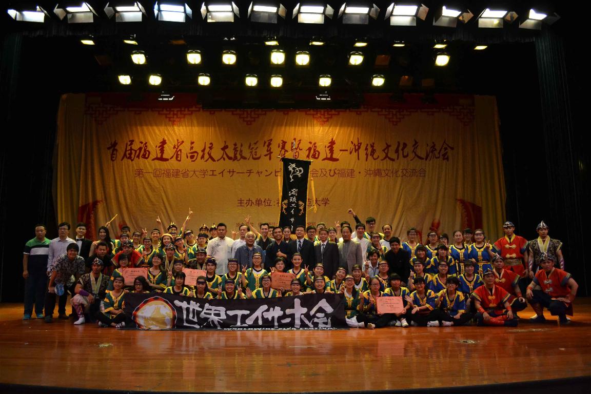 比赛中,我校闽琉太鼓队巧妙地将福建传统乐器钱箭和狼串融入太鼓表演,展现两地文化交融的独特魅力,赢得阵阵喝彩,最终夺得首魁,并将受邀参加今年9月在冲绳那霸举行的世界太鼓比赛。