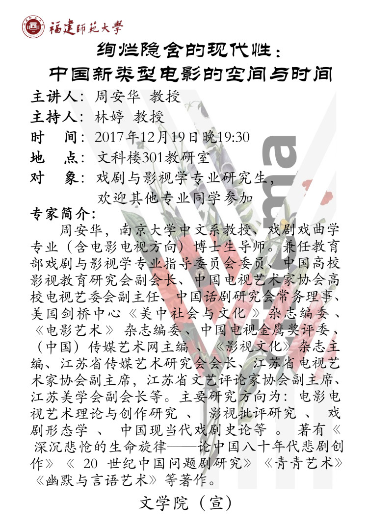 学术讲座【绚烂隐含的现代性:中国新类型电影的空间和时间】
