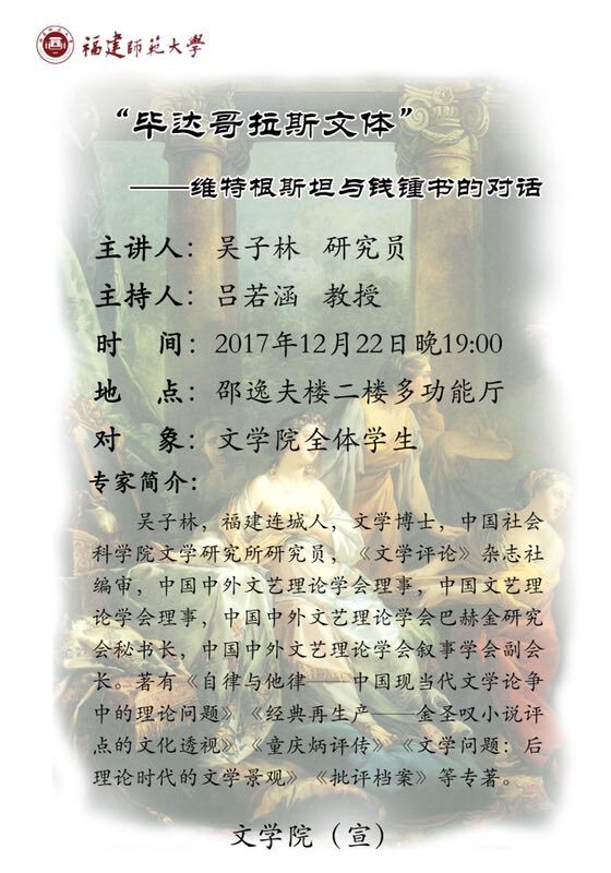 学术讲座【“毕达哥拉斯文体”——维特根斯坦与钱钟书的对话】